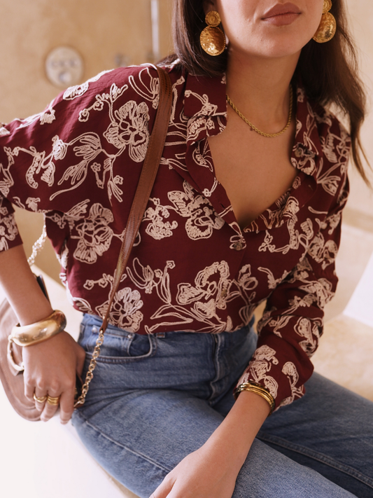 ÉpuiséChemise Bordeaux Fleurie