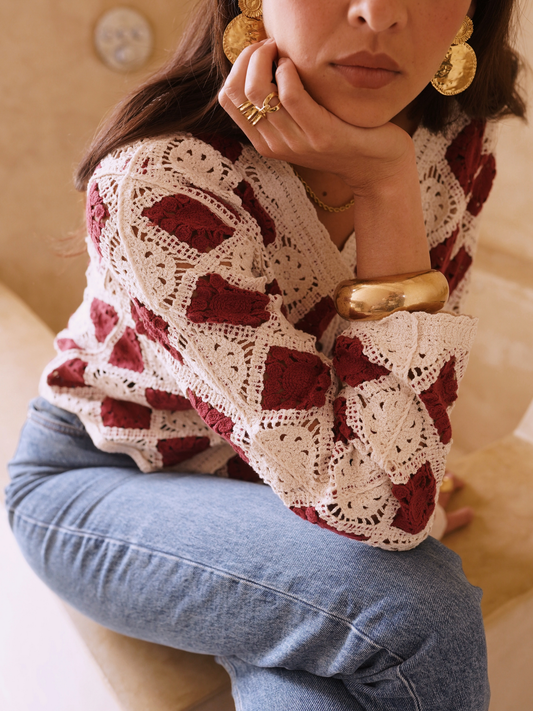 Découvrez notre collection de gilets et pulls, alliant chaleur, confort et élégance, avec des modèles variés et colorés inspirés de l'esprit Hippie Chic, parfaits pour compléter vos tenues tout en restant tendance et cosy.