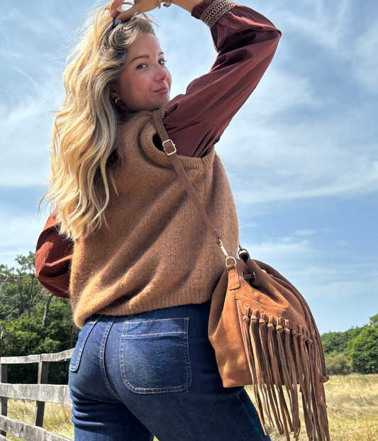 Découvrez notre collection de gilets et pulls, alliant confort, chaleur et style, avec des modèles parfaits pour toutes les occasions, toujours dans l’esprit Hippie Chic. Parmi nos pièces phares, retrouvez des gilets mi-longs ouverts, idéaux pour superposer avec un pull à col V oversize ou encore nos pulls doudou à col montant, parfaits pour les journées fraîches. Vous pourrez aussi craquer pour nos pulls imprimés à message doré ou léopard, qui apportent une touche d'originalité à vos looks.