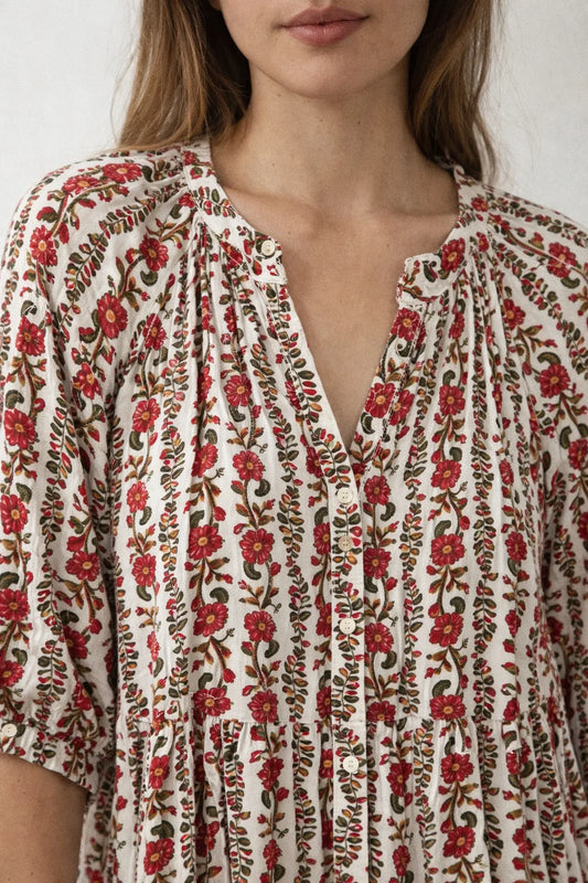 Blouse Brodée Fleurs Rouges