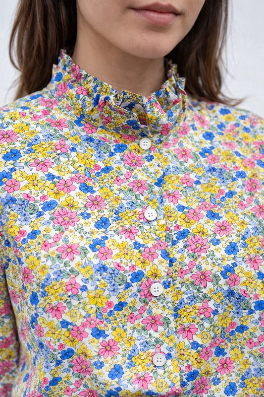 Chemise Fleurie Col Montant