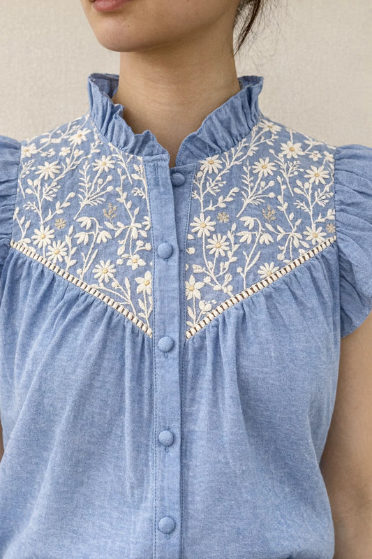 Chemise sans Manches Bleue Brodée