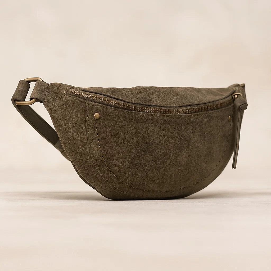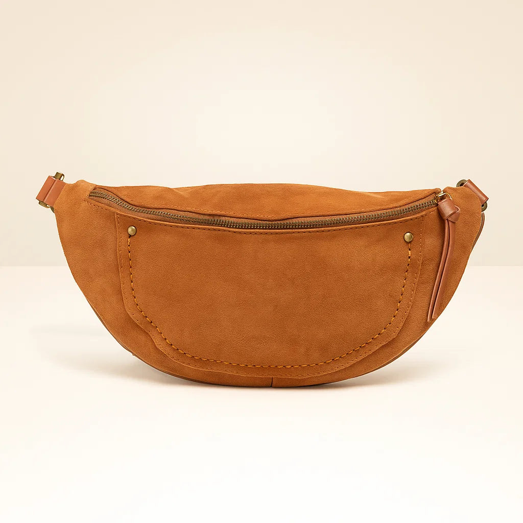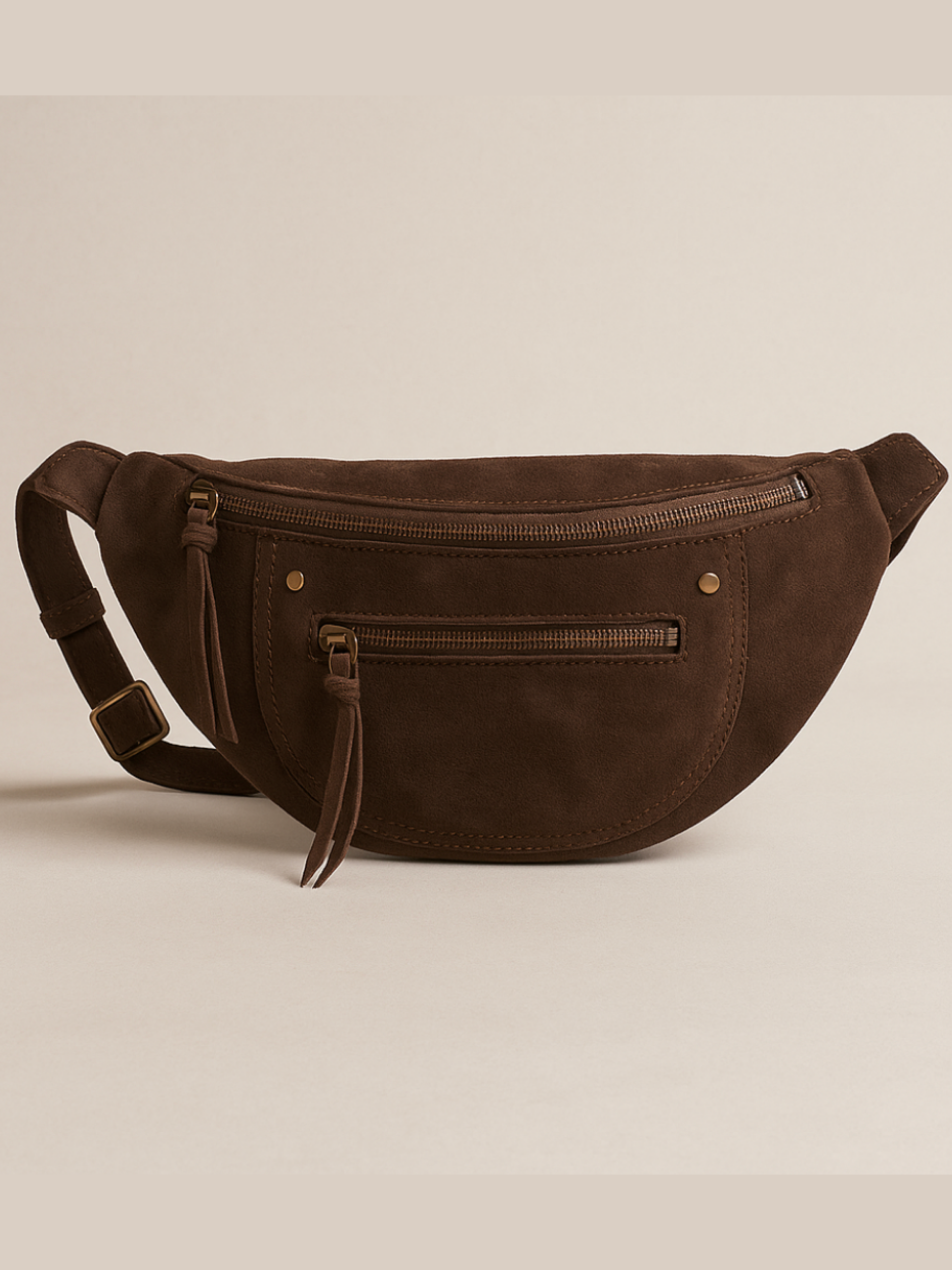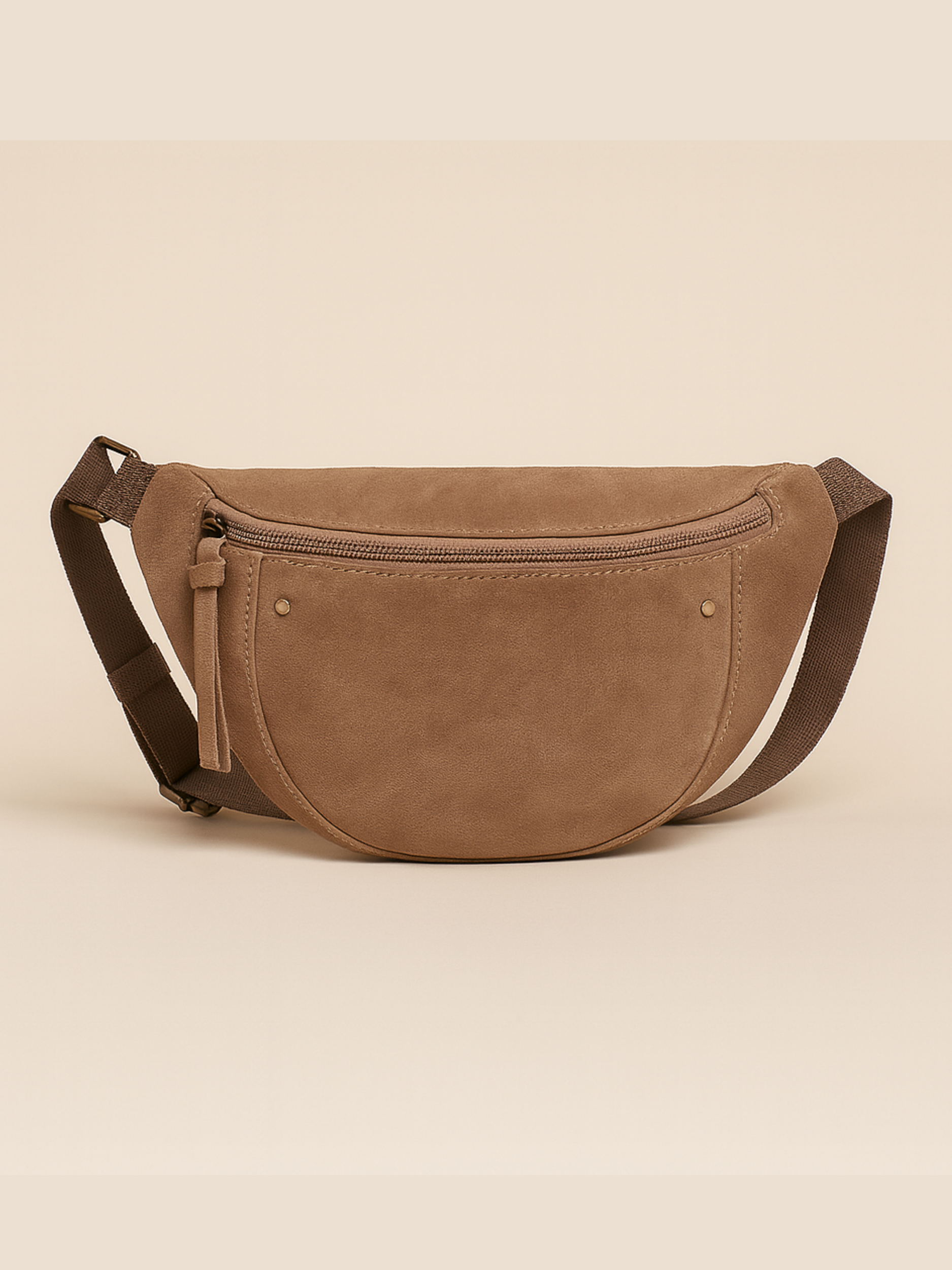 Cette banane séduit par son style arrondi et sa grande fermeture zippée sur le dessus, qui assure sécurité et praticité. Sa matière synthétique douce imite l’aspect du daim pour un rendu chic et moderne, parfait pour toutes vos sorties.