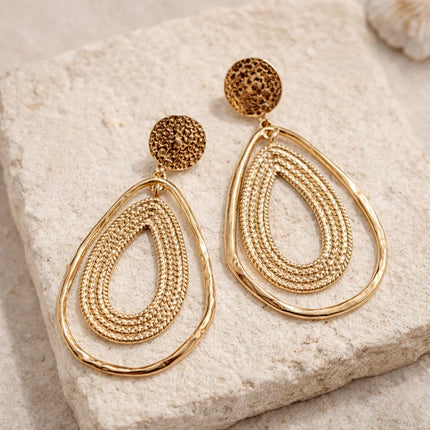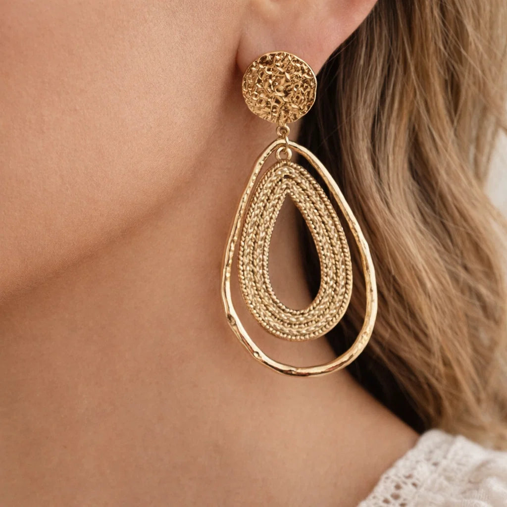 Boucles d’oreilles goutte martelée dorées : élégance et modernité