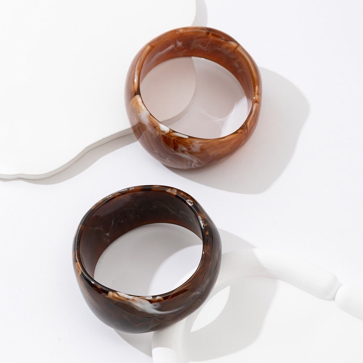 Ajoutez une note rétro chic à vos tenues avec ce bracelet jonc en résine marbrée, proposé en deux coloris élégants : marron clair et marron foncé. Avec son diamètre intérieur de 6,5 cm, il s’adapte confortablement à la plupart des poignets et devient un accessoire incontournable pour sublimer vos looks bohèmes.