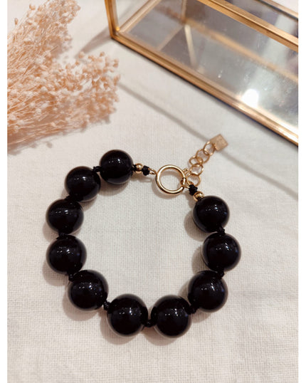 Élégant et raffiné, ce bracelet à perles en résine est un indispensable pour compléter vos looks. Disponible en deux coloris intemporels (noir et terracotta), il est sublimé par un fermoir doré en acier inoxydable qui apporte une touche chic et durable.