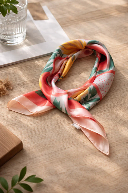 Ce carré de foulard 60x60 cm est une véritable invitation au soleil. Son imprimé tropical mêlant pastèques, ananas et fruits exotiques apporte une touche fraîche, colorée et joyeuse à vos tenues. C’est l’accessoire parfait pour dynamiser un look simple et lui donner une allure estivale instantanée.