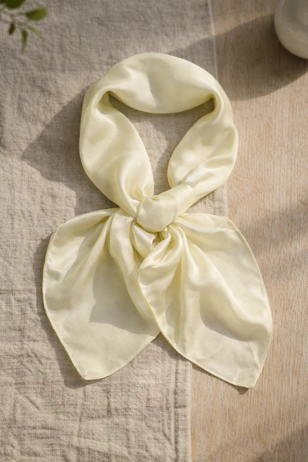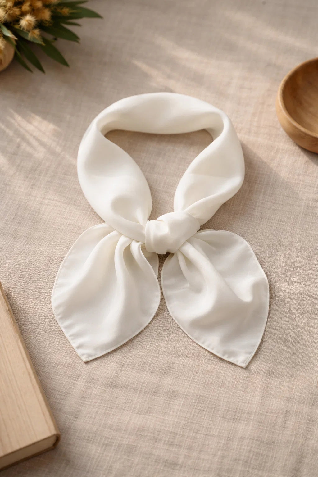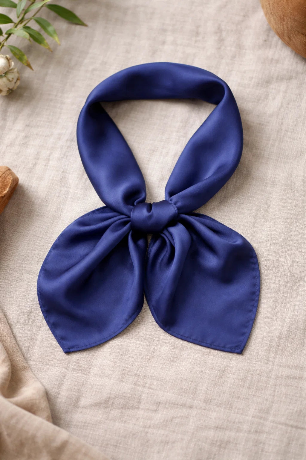Confectionné dans un mélange de 80 % polyester et 20 % soie, il offre un toucher doux, légèrement satiné et très agréable à porter. Léger et confortable, il ne tient pas chaud excessivement et reste facile à nouer tout au long de la journée.