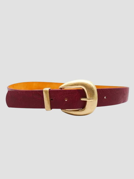 La ceinture Elinore est le complément élégant et polyvalent parfait pour toutes vos tenues. Fabriquée avec un mélange de matières synthétiques et de cuir de vachette, elle offre le meilleur des deux mondes : confort et durabilité. La boucle dorée ajoute une touche de sophistication à cet accessoire qui est disponible en noir et bordeaux. Choisissez parmi six tailles pour un ajustement parfait.
