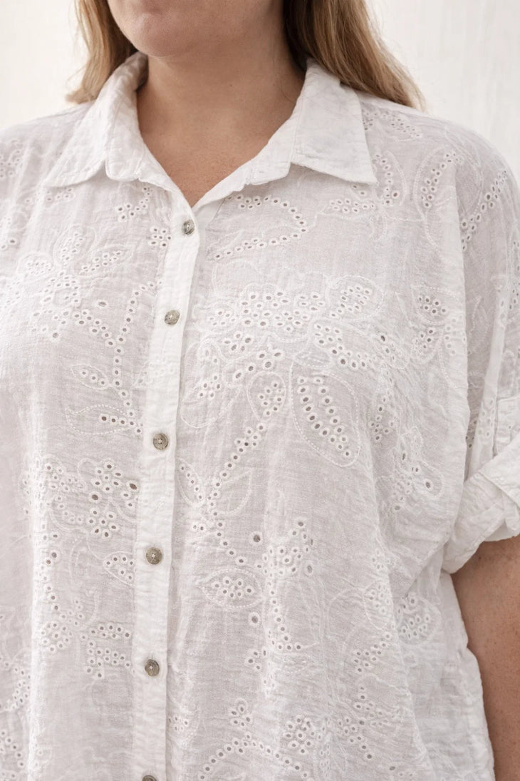 Chemise femme en coton brodé fluide grande taille bohème chic