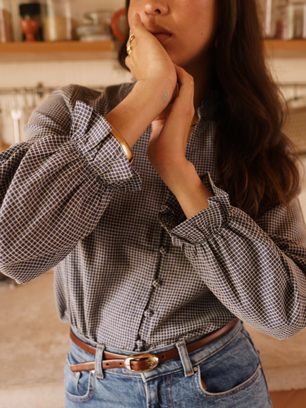 Laissez-vous séduire par l’élégance intemporelle de cette chemise en coton à petits carreaux, disponible en tailles S/M et M/L. Confortable et respirante grâce à sa matière 100 % coton, elle constitue un indispensable du dressing féminin, parfait pour un look bohème chic revisité.