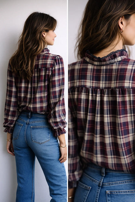 Chemise à carreaux volantée – 100 % coton – Du S au L