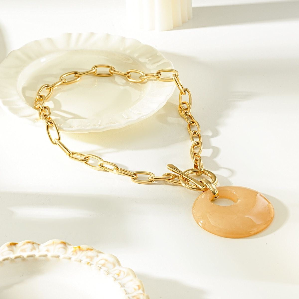 Collier chaîne dorée et pendentif résine : élégance solaire et moderne