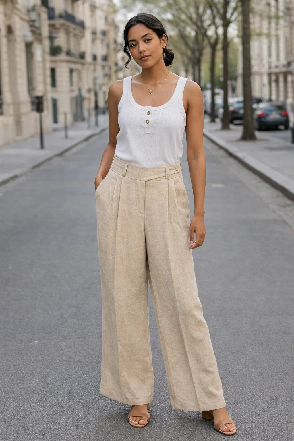 Ce débardeur en coton 100 % naturel est un véritable essentiel à avoir dans son dressing. Simple, féminin et facile à porter, il accompagne vos journées avec légèreté et confort. Sa coupe fluide et son encolure délicatement boutonnée apportent une touche bohème chic discrète, parfaite pour un style décontracté mais soigné. Proposé en plusieurs coloris, il s’adapte à toutes vos envies et à toutes les saisons.