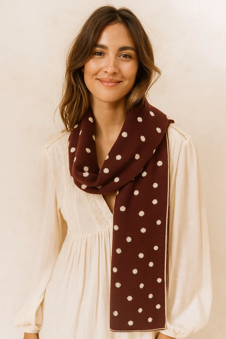 Cette écharpe à pois est l’accessoire parfait pour ajouter une touche d’élégance à tes tenues d’hiver. En maille douce et chaude, elle allie confort et style grâce à son motif intemporel et ses finitions soignées.