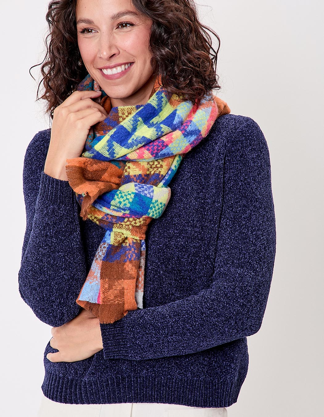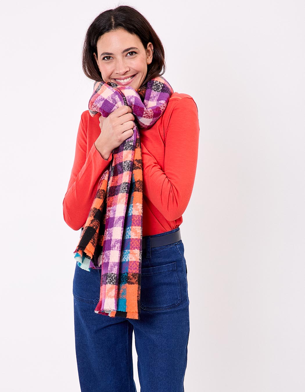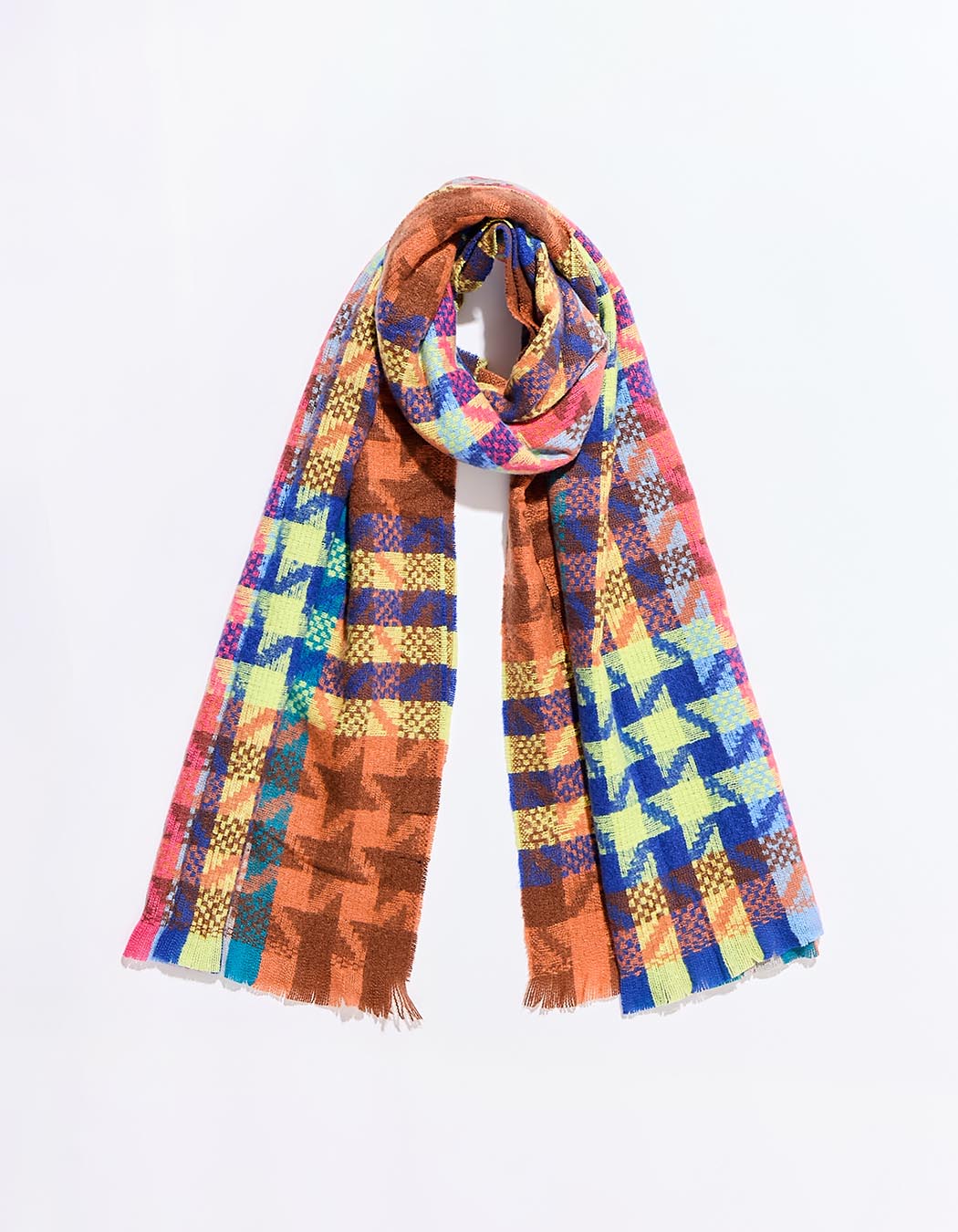 Avec ses dimensions généreuses (180 x 65 cm), cette écharpe permet de multiples styles : nouée, en châle ou en étole. Ses imprimés graphiques aux nuances vives subliment les tenues sobres et apportent une touche de gaieté à vos looks d’automne et d’hiver.