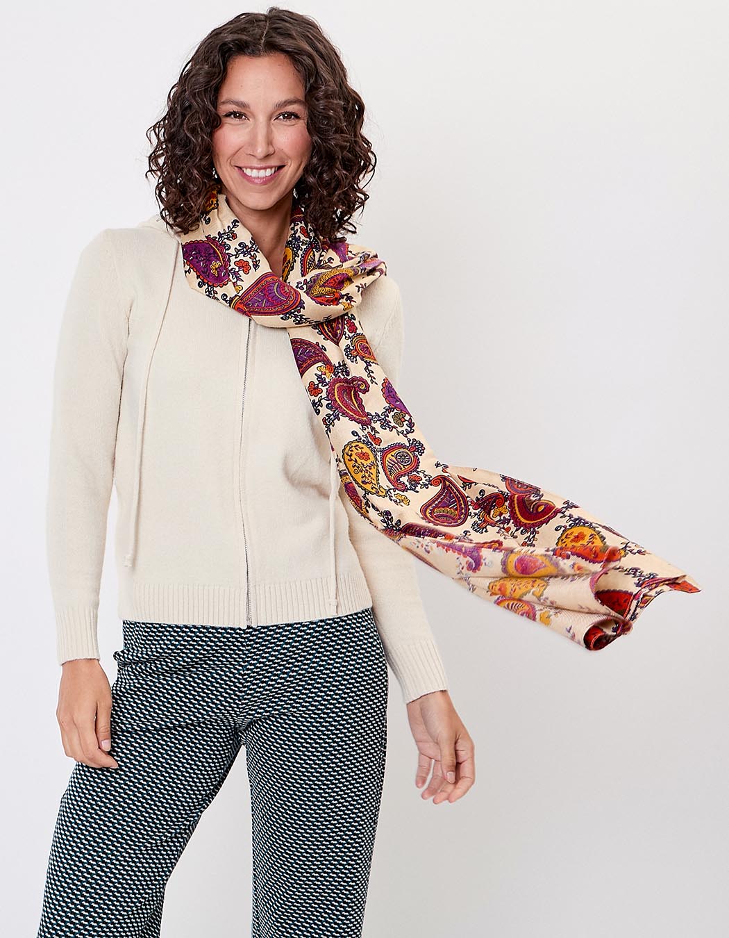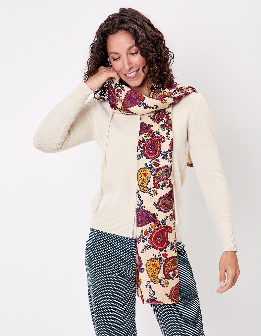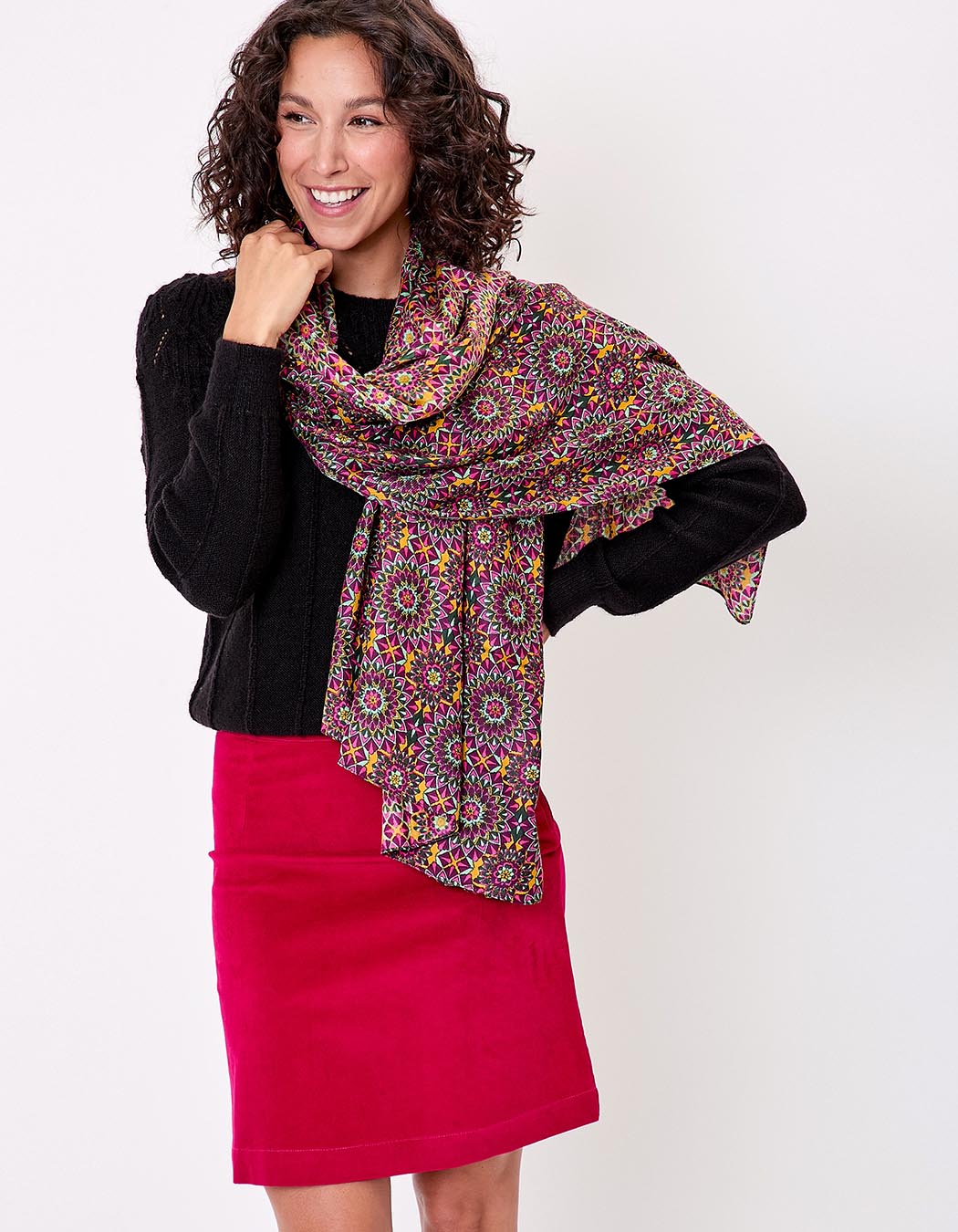 Disponible en plusieurs imprimés colorés, elle s’intègre aisément dans un vestiaire bohème ou citadin. Elle se marie parfaitement à une veste en jean, un manteau long ou une robe fluide pour un style affirmé.