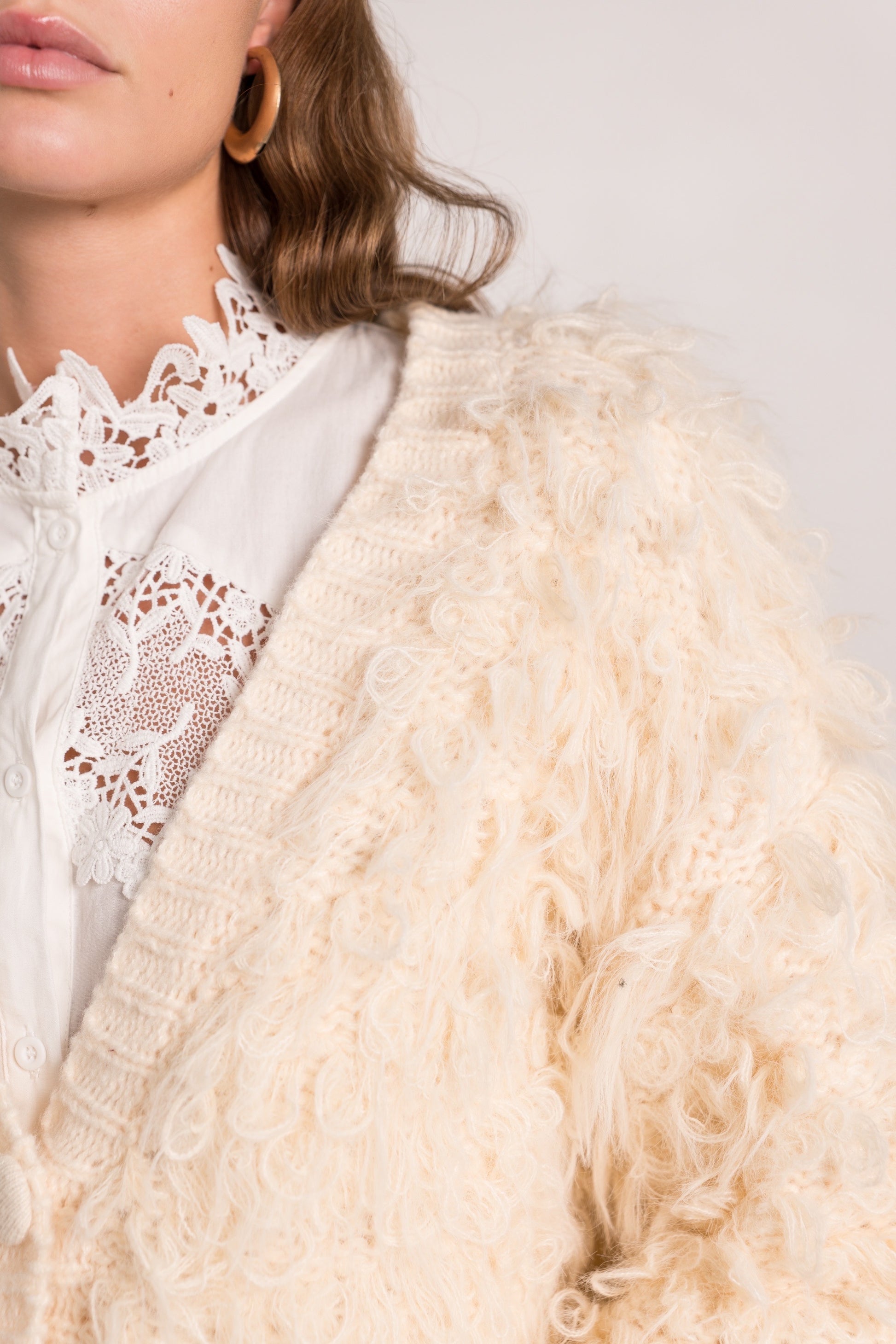 Avec ses bouclettes en relief qui apportent volume et style, et ses boutons recouverts ton sur ton, ce gilet devient une pièce forte de votre dressing bohème chic. Sa maille épaisse en fait un allié parfait pour affronter la saison automne-hiver tout en restant élégante.