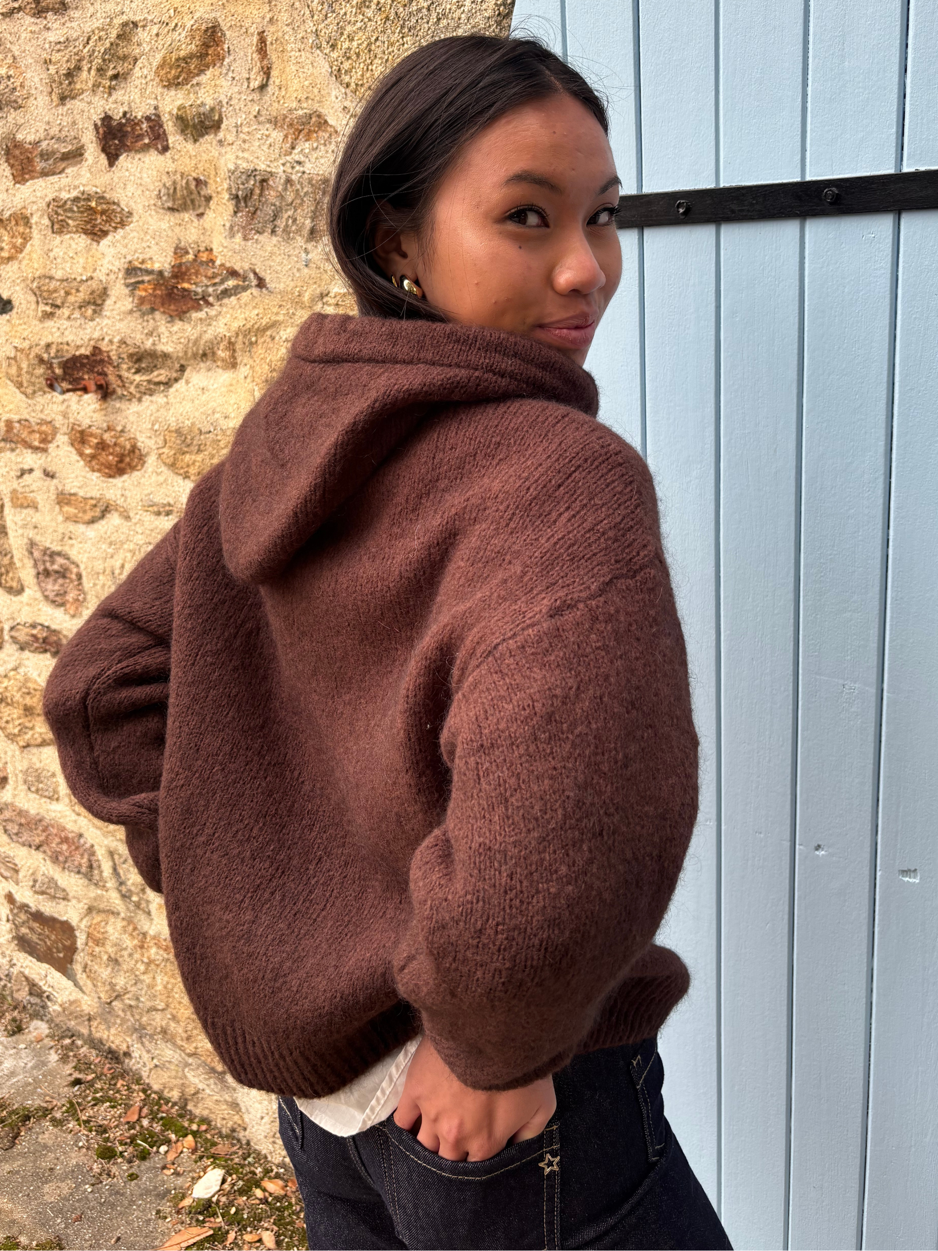 💡 Pour un effet plus ample et cocooning, choisissez votre taille habituelle ou une taille au-dessus si vous aimez porter des pulls épais dessous.