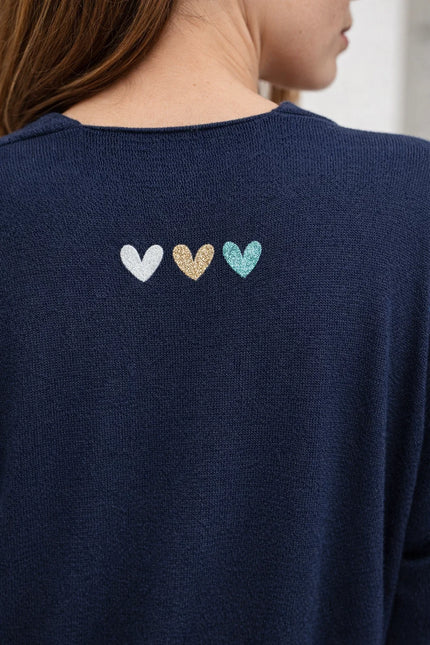 Ce gilet en maille douce est une pièce incontournable pour compléter vos tenues avec élégance et confort. Sa coupe fluide et ouverte s’adapte naturellement à votre silhouette et en fait un allié du quotidien, facile à enfiler et agréable à porter. On craque pour son petit détail au dos : de jolis cœurs discrets et lumineux, qui apportent une touche féminine et originale, fidèle à l’esprit bohème chic.