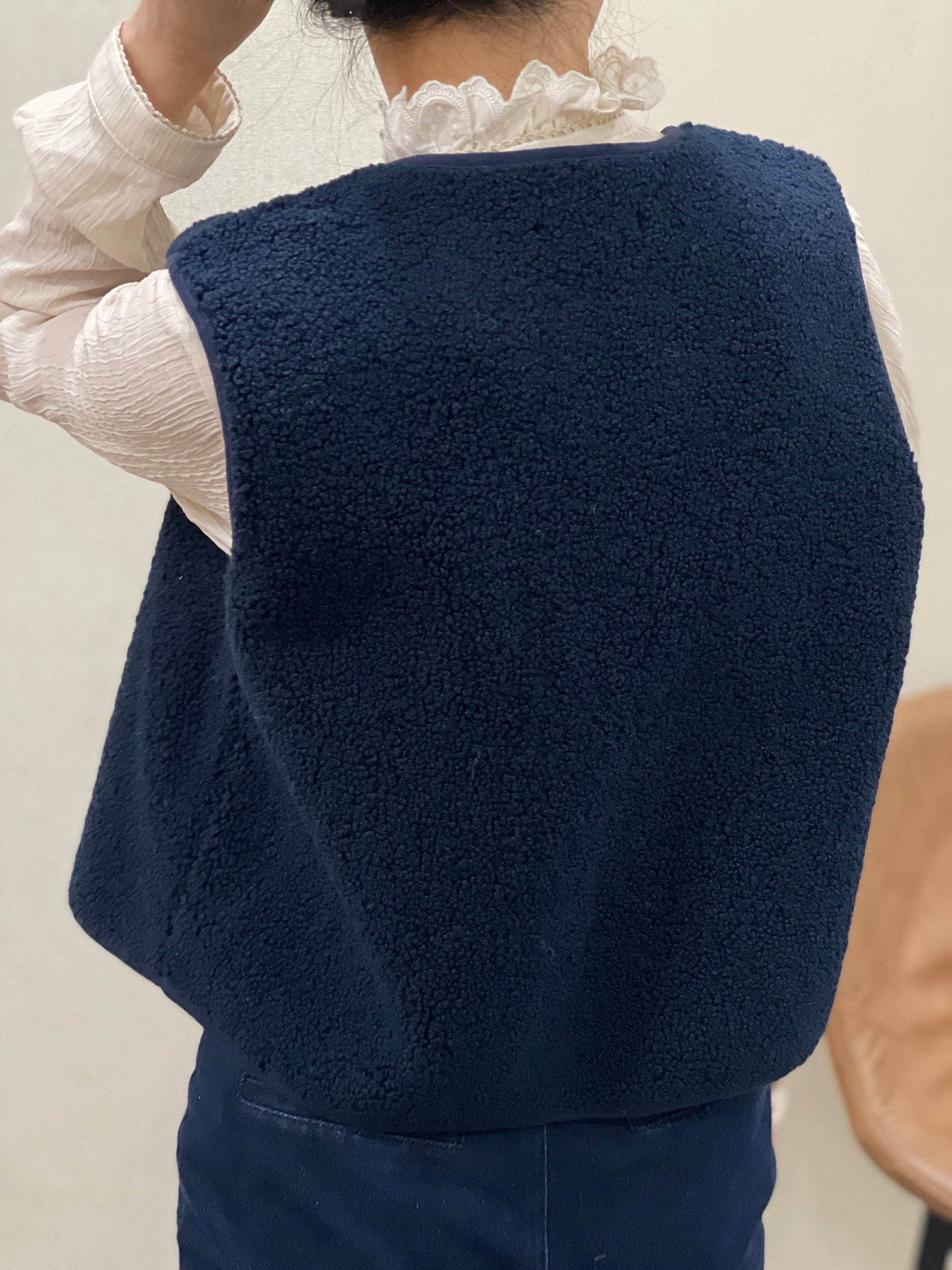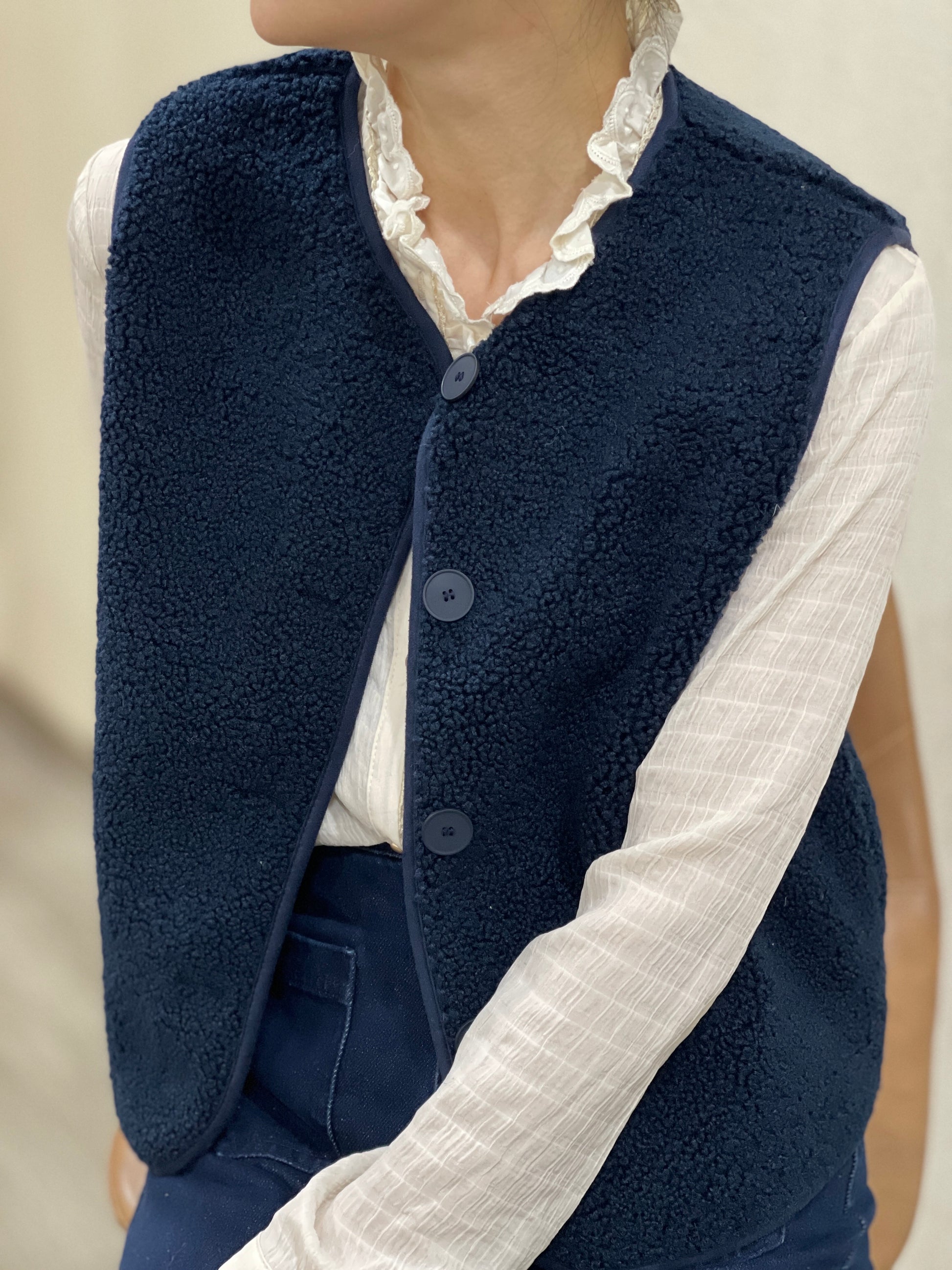 Douillet, tendance et facile à porter : ce gilet sans manches effet moumoute est votre allié des journées fraîches. Conçu en 100 % polyester, il est à la fois léger, chaud et agréable sur la peau. Sa coupe droite légèrement ample permet de le superposer facilement à un chemisier, un pull ou même un sweat. Fermé par de jolis boutons ton sur ton, il structure la silhouette tout en apportant une touche cocooning irrésistible.