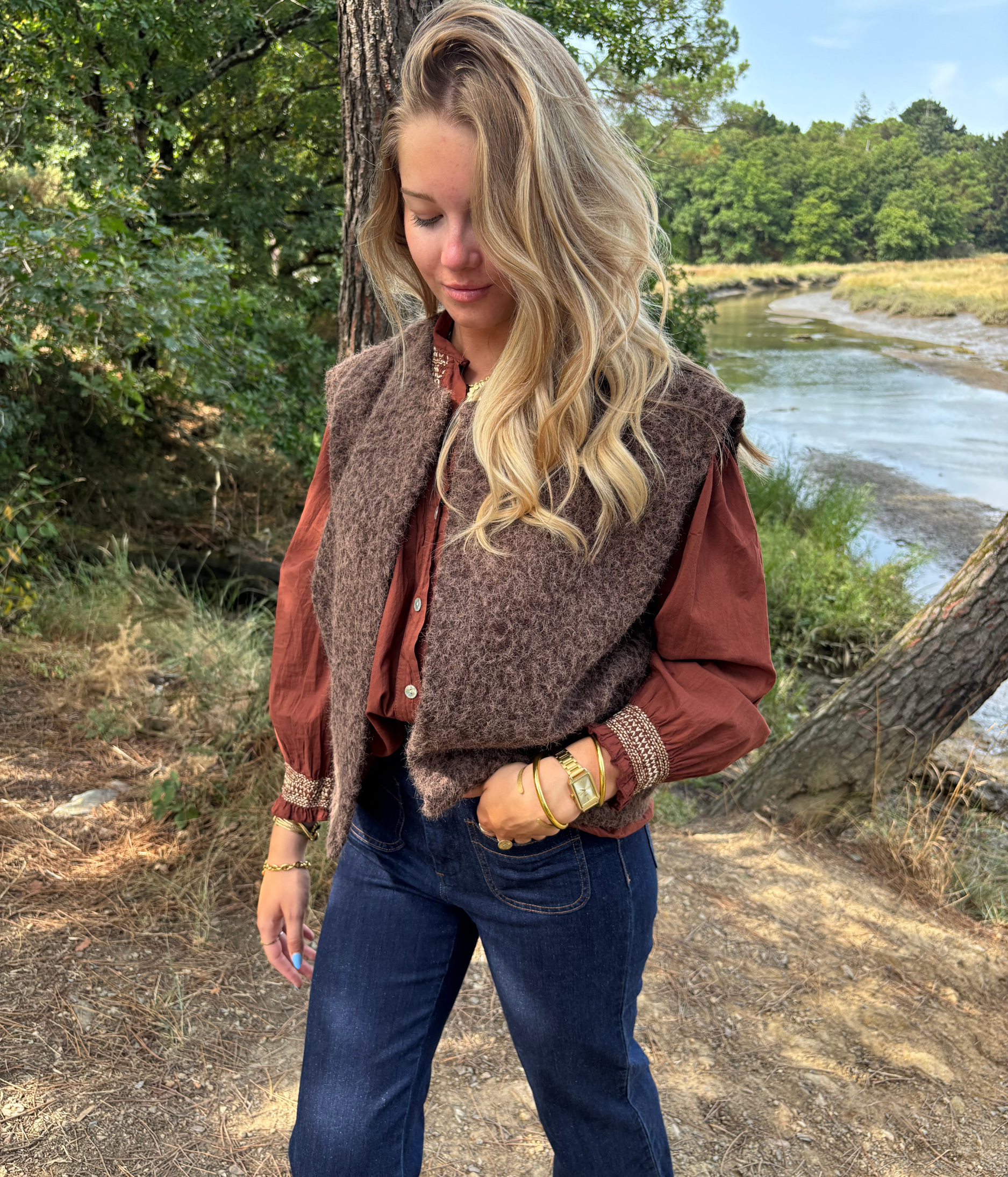 Pensé pour une femme épanouie et active, il s’intègre à merveille dans un look chic décontracté. Porté sur un jean en denim brut ou un pantalon fluide en gaze de coton, il structure la tenue sans l'alourdir. À la fois simple et travaillé, il permet de varier vos tenues en un clin d’œil.