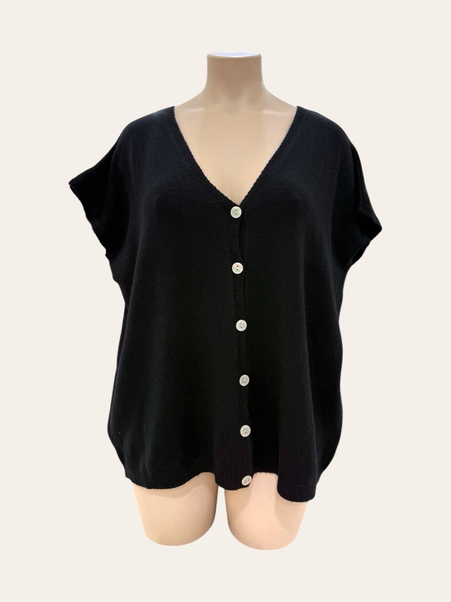 Élégant et confortable, ce gilet boutonné est conçu pour accompagner toutes vos tenues avec simplicité et style. Disponible en taille unique du 44 au 50, il s’adapte parfaitement aux morphologies généreuses grâce à sa coupe ample et fluide.