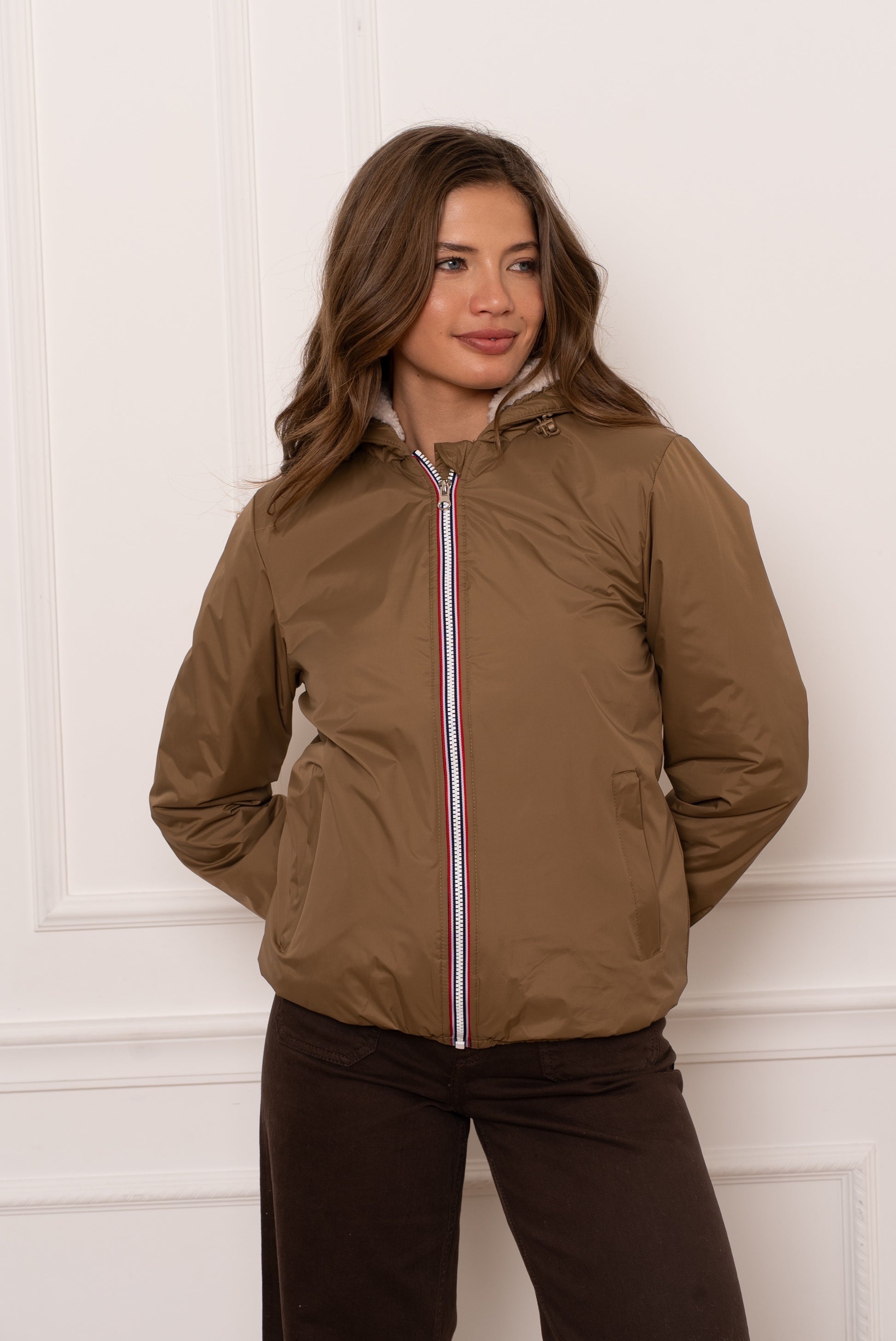 Dotée d’une matière imperméable, cette veste protège efficacement du vent et des intempéries tout en restant légère et agréable à porter. La capuche intégrée et les poches latérales zippées assurent un confort optimal au quotidien. L’intérieur chaud en Sherpa contraste joliment avec la finition lisse extérieure, pour un look à la fois chic et fonctionnel.