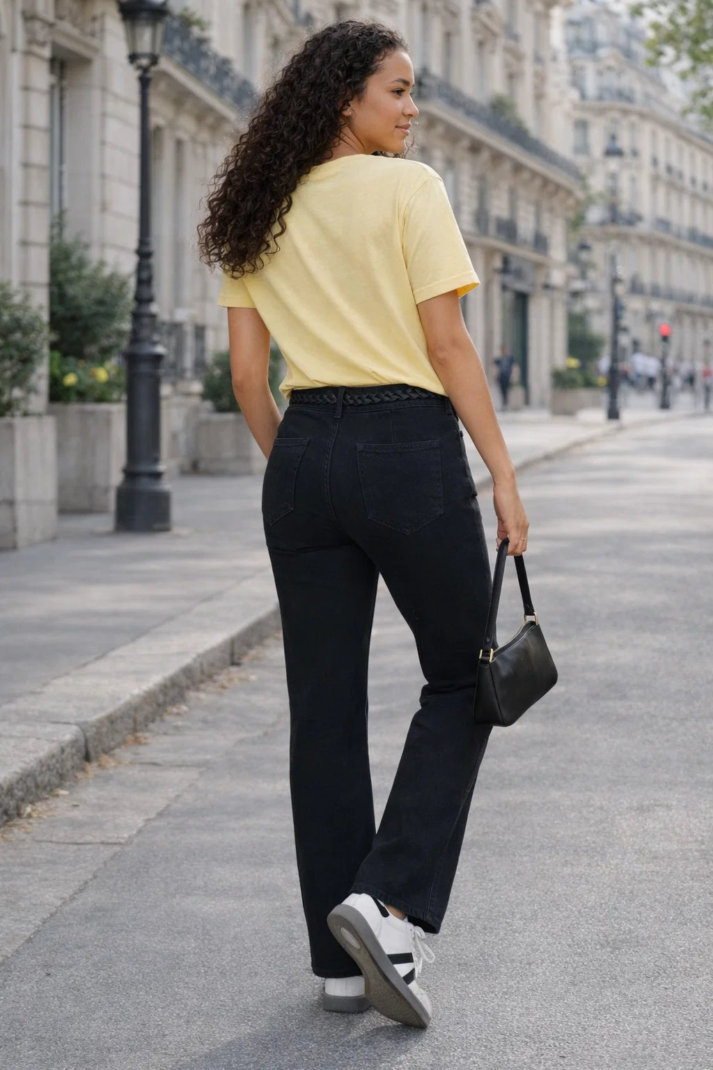 Ce jean noir femme est un indispensable du dressing, revisité par un détail tressé délicat à la taille qui apporte une touche d’originalité et de féminité. Sobre et élégant, il s’adapte aussi bien à un look casual qu’à une tenue plus habillée. C’est le jean parfait pour structurer la silhouette tout en restant confortable au quotidien.