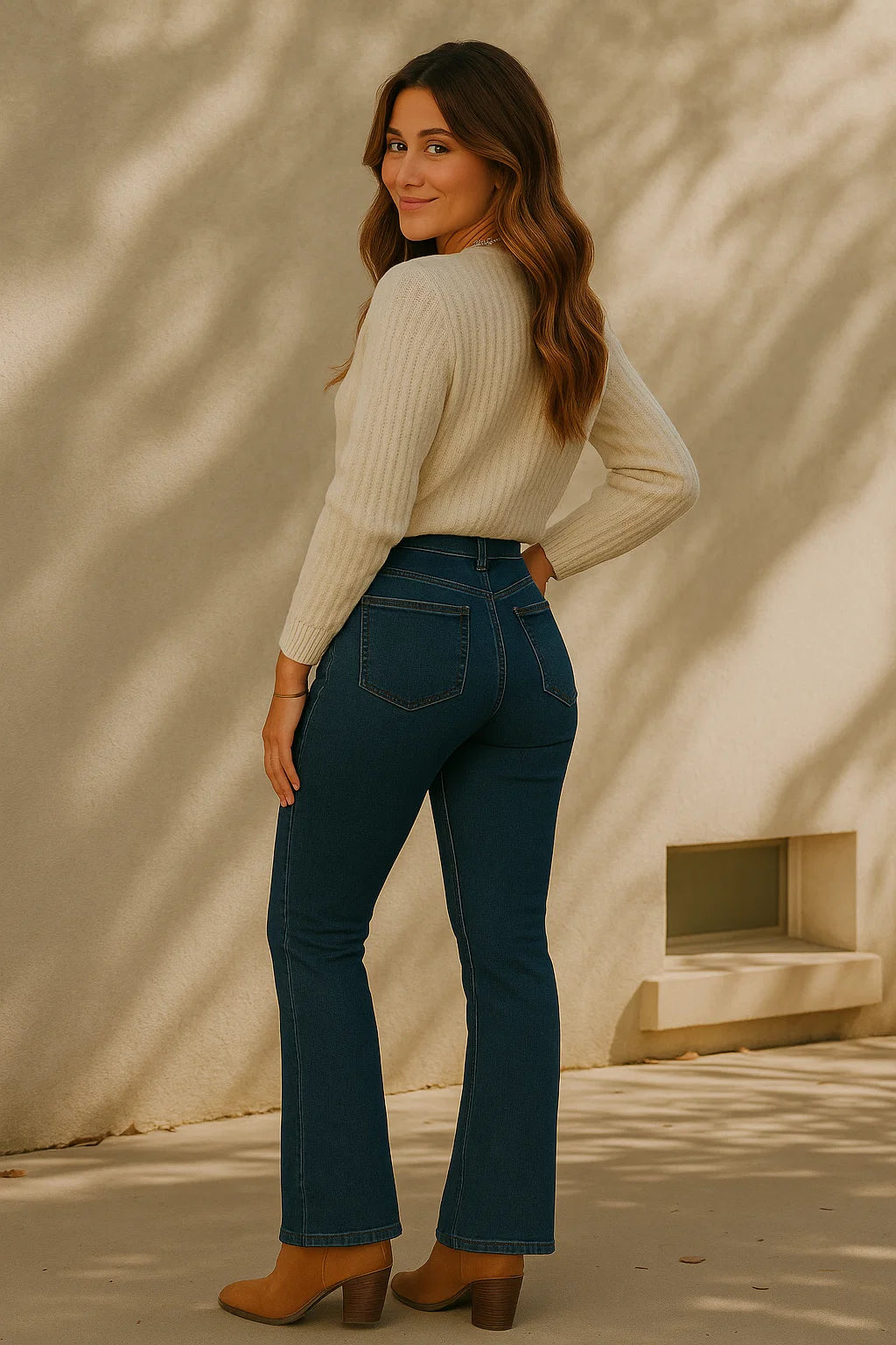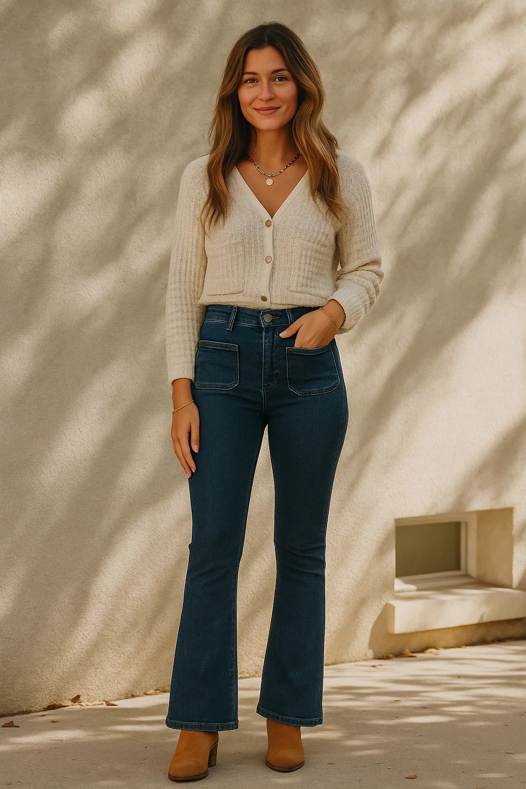 Jean flare bleu à poches plaquées – confortable, structurant et tendance