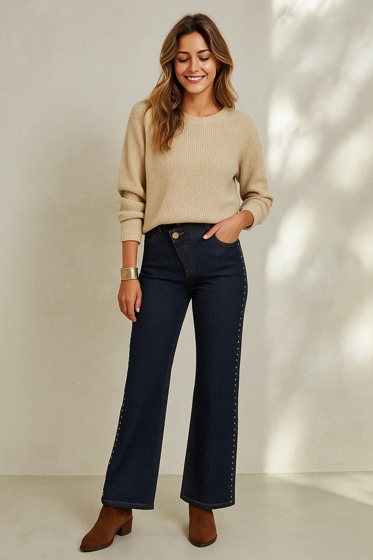 Jean Wide Leg à Rivets – Tailles 34 à 42