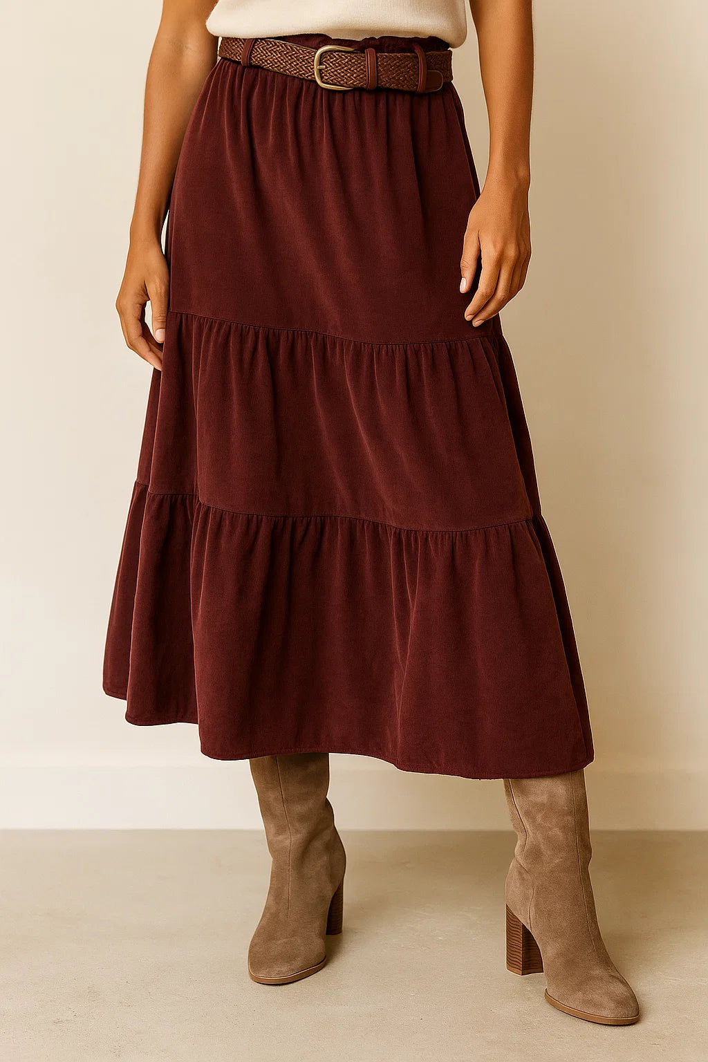 Jupe midi en velours – Élégance et confort naturel