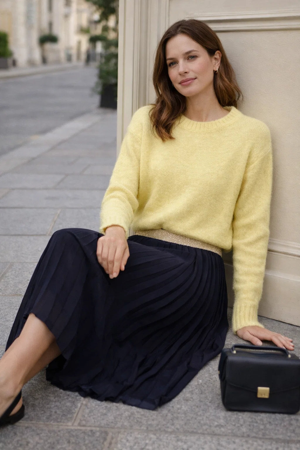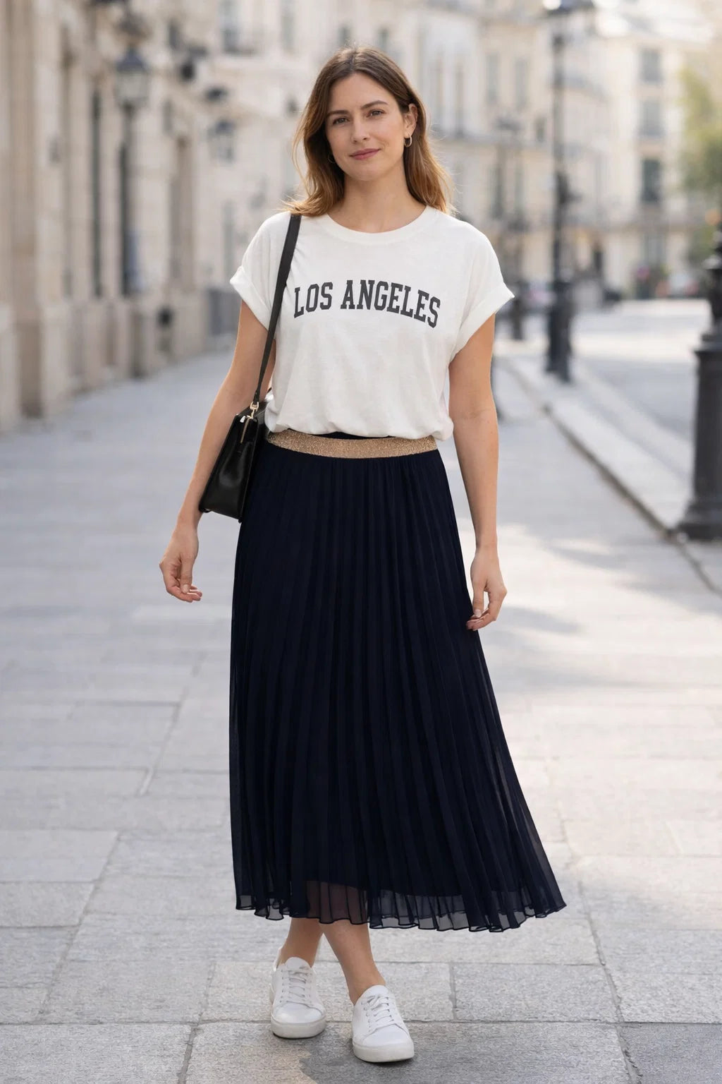 Cette jupe plissée se porte aussi bien avec un tee-shirt, une blouse fluide, un pull fin ou un gilet selon la saison. Elle se marie parfaitement avec des baskets pour un look casual chic, ou des sandales et bottines pour une allure plus habillée.
