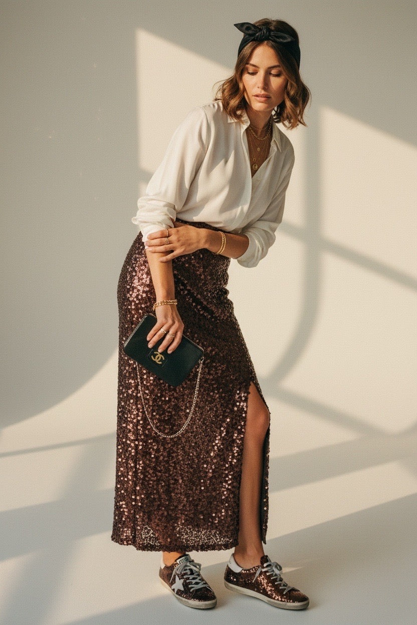Jupe midi à sequins – élégance, brillance et coupe flatteuse