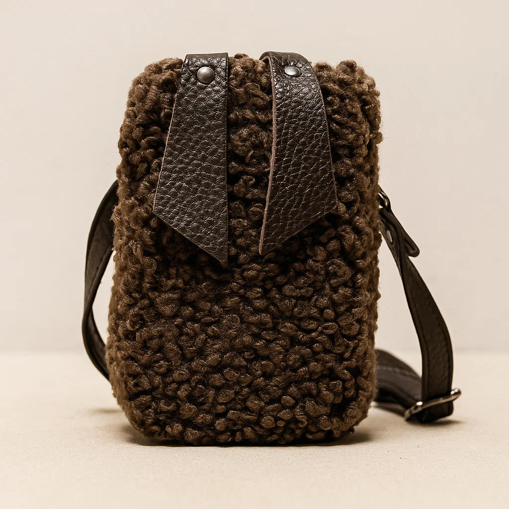 Craquez pour ce mini sac en cuir effet moumoute, une pièce tendance et cosy qui apporte une touche bohème chic à toutes vos tenues. Compact mais pratique, son format 11x18x2 cm en fait l’accessoire idéal pour transporter vos essentiels avec style.