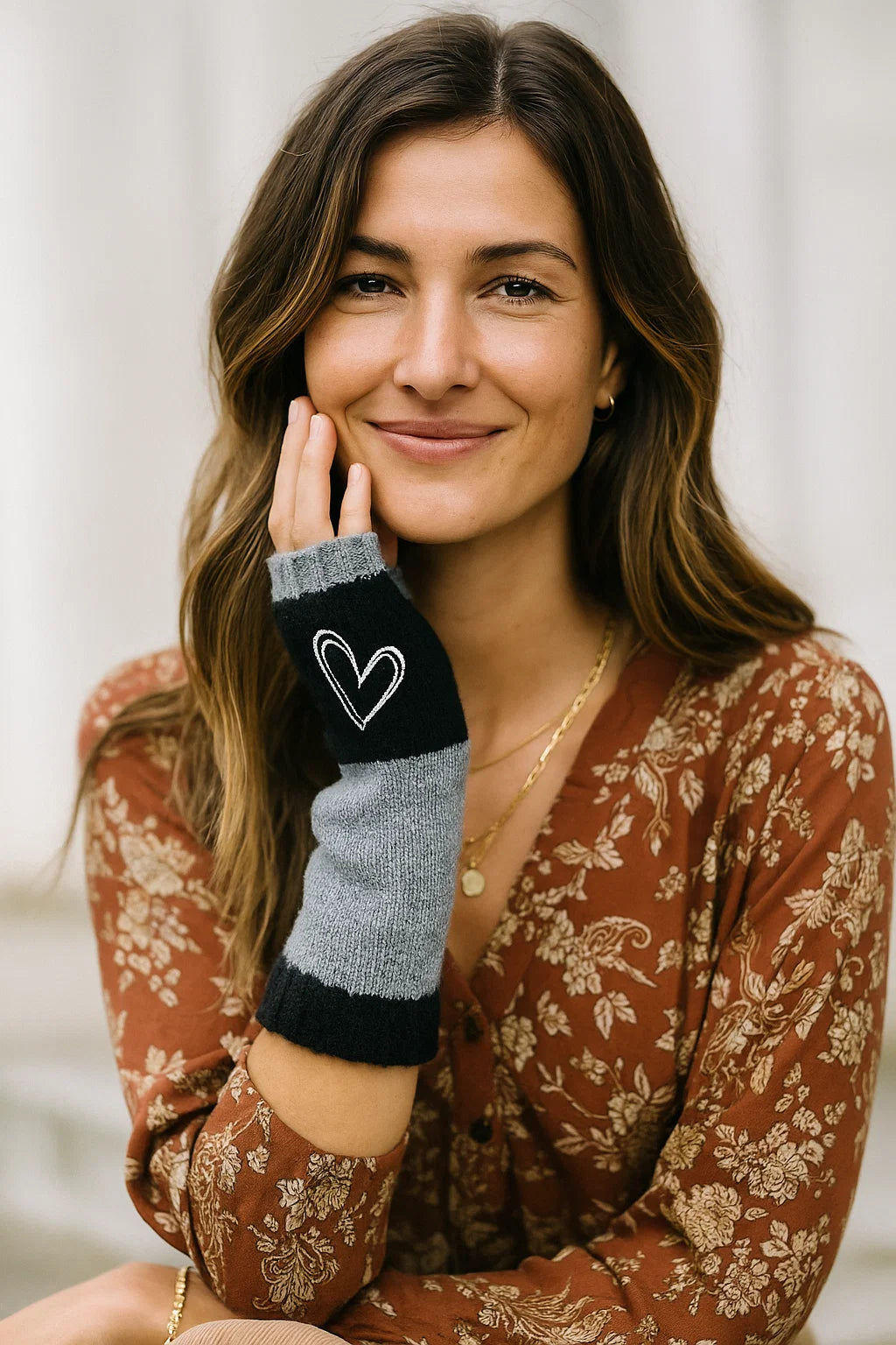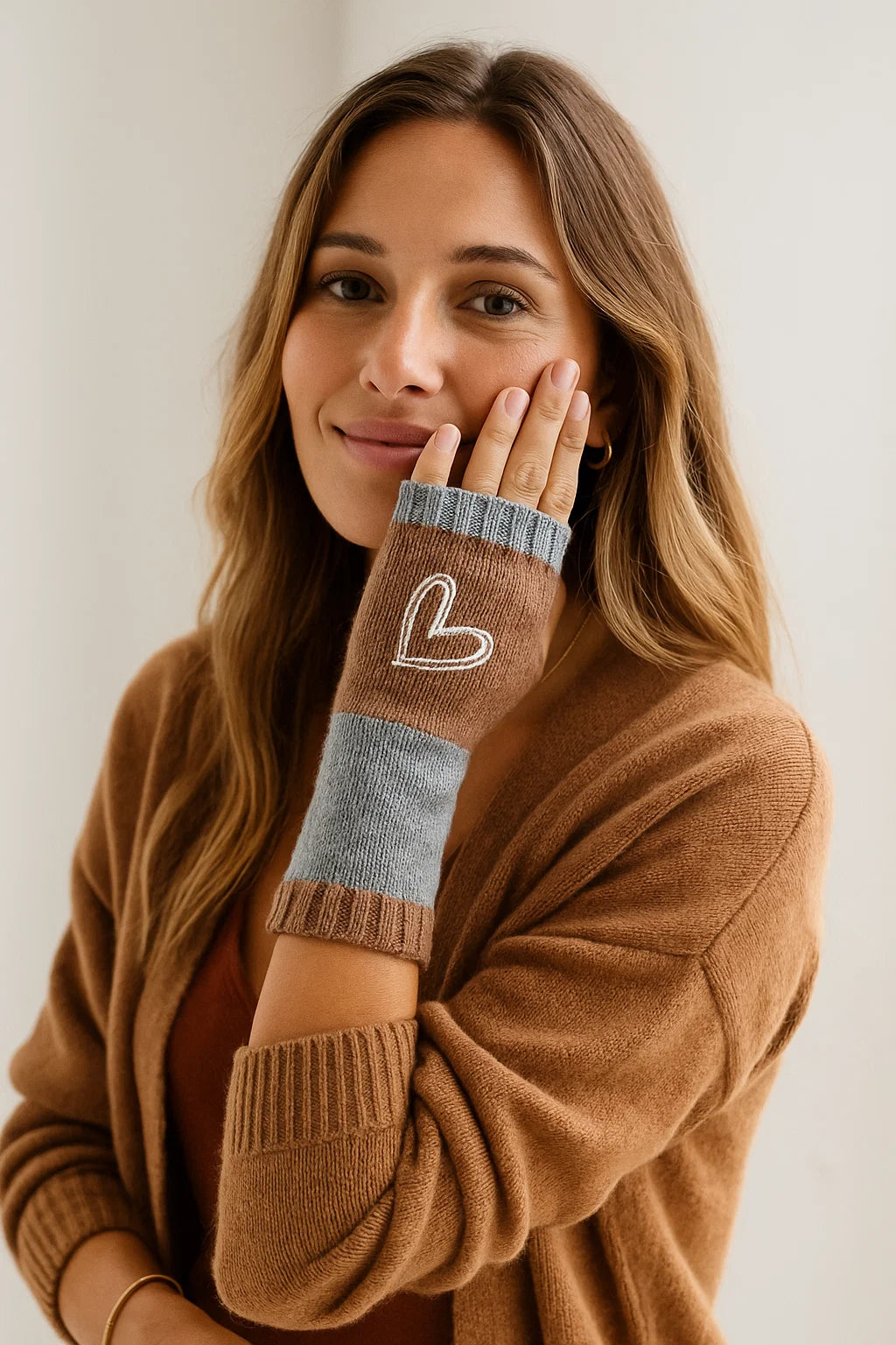 Mitaines Bicolores avec Cœur Brodé – Douces, Chaudes & Féminines