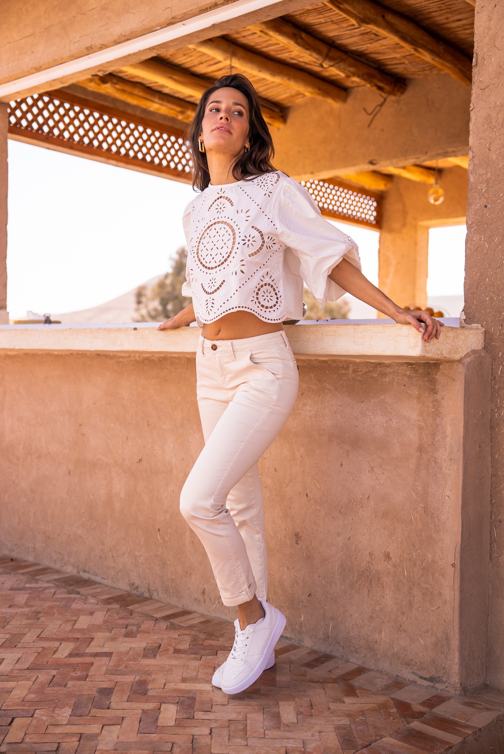 Ce pantalon chino femme est une pièce essentielle du dressing, à la fois élégante et facile à porter. Sa coupe ajustée, ni trop près du corps ni trop large, met en valeur la silhouette tout en offrant une allure naturelle et moderne. Inspiré de l’esprit bohème chic, il se porte aussi bien au quotidien qu’en version plus habillée, selon les associations.