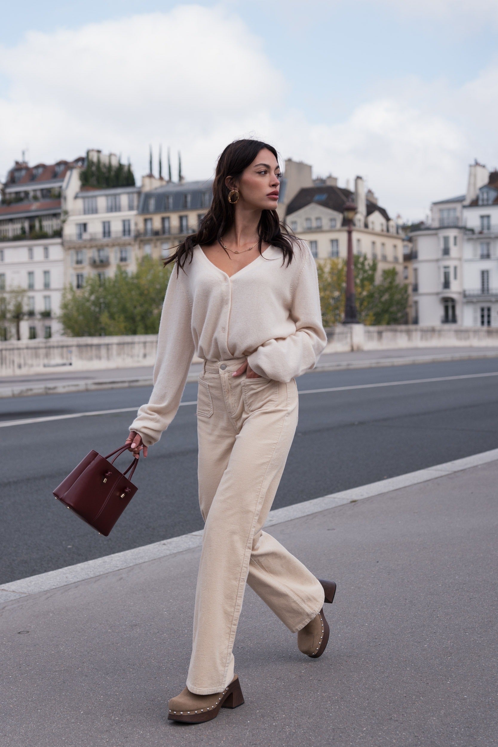 💡 Pour un effet plus ample et cocooning, choisissez votre taille habituelle ou une taille au-dessus si vous aimez porter des pulls épais dessous.