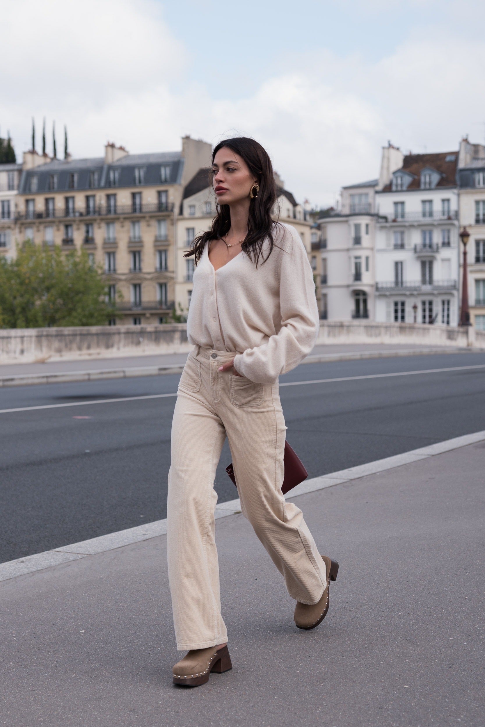 Ce pantalon Sekia est à la fois confortable, élégant et tendance. Avec sa matière en velours côtelé, il vous apportera douceur et chaleur tout en vous donnant une allure sophistiquée. Disponible en beige clair et pistache, il s'adaptera à toutes les occasions et toutes les saisons. Tailles allant du 34 au 42.