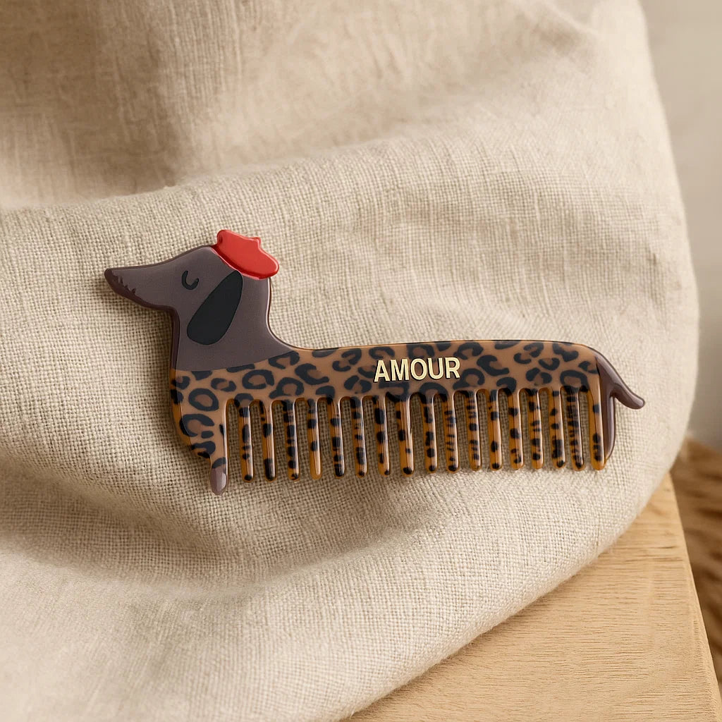 Ce peigne fantaisie en acrylique est pensé pour vous accompagner chaque jour avec style et praticité. Confortable en main, il glisse facilement dans vos cheveux sans les abîmer et apporte une petite touche d’originalité que vous aimerez sortir de votre sac. Sa silhouette inspirée d’animaux adorables (chat, coq ou teckel selon le modèle) en fait un accessoire à la fois utile et irrésistiblement charmant.