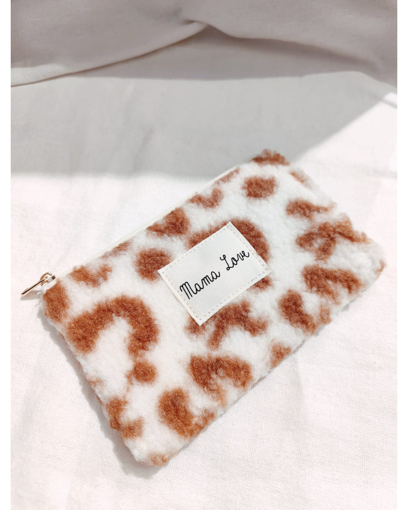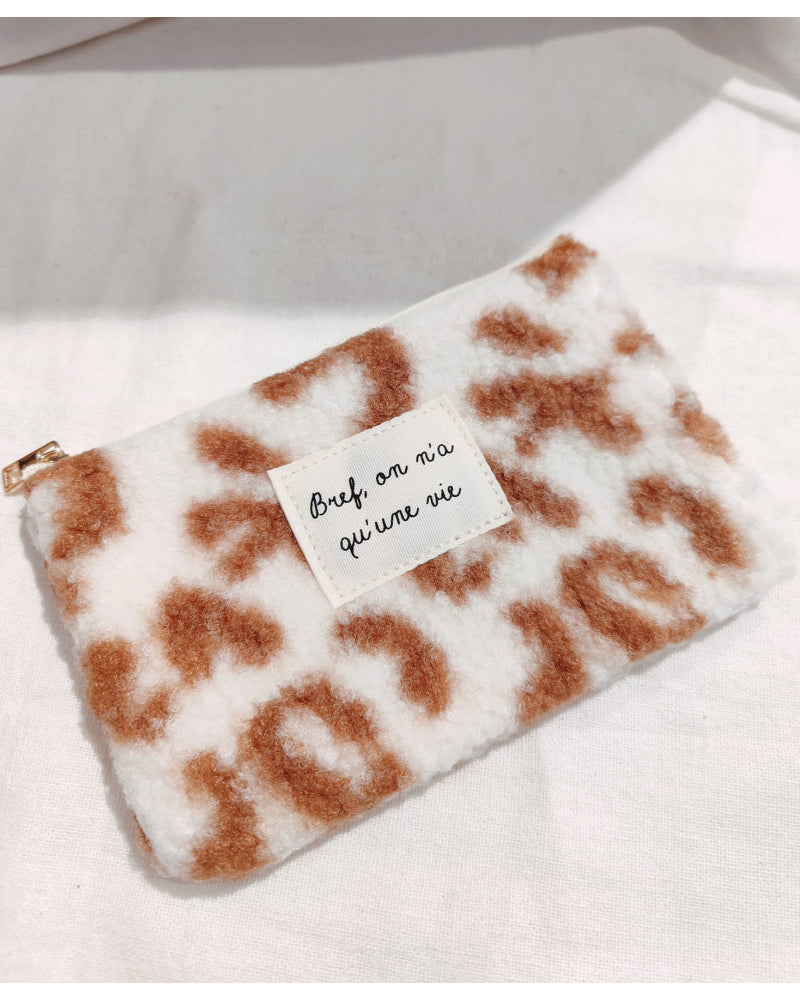 Pochette moumoute “Bichette” – Imprimé léopard et message personnalisé