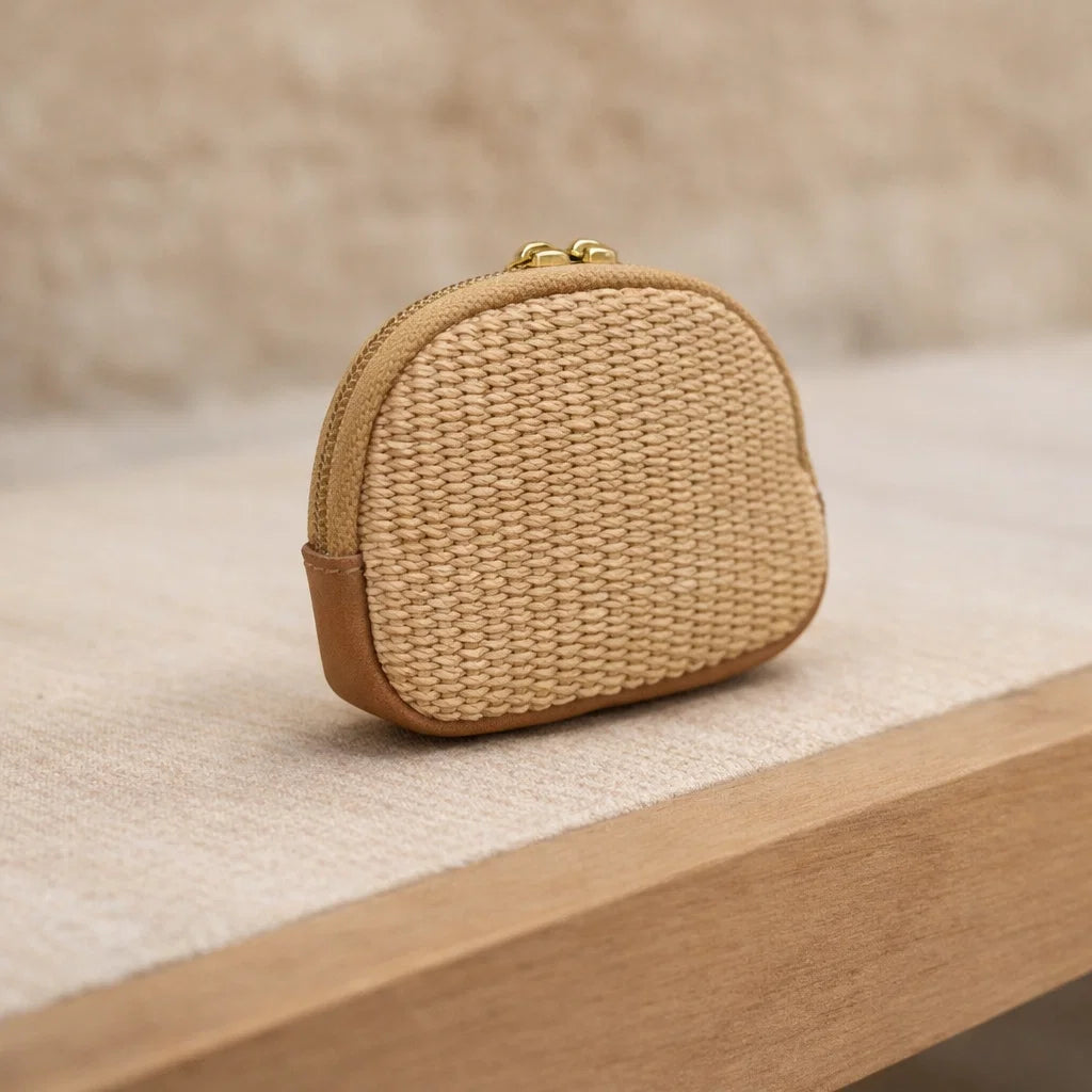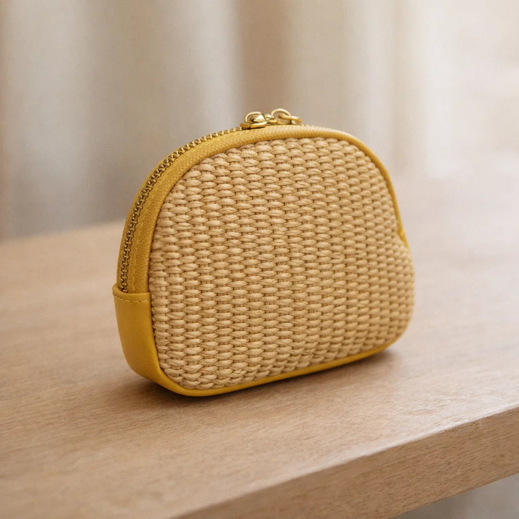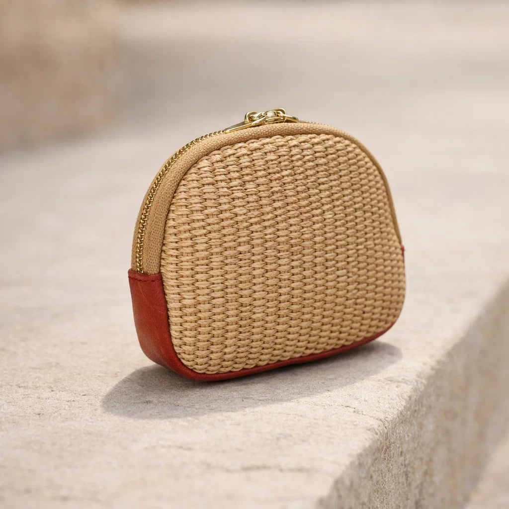 Porte-monnaie en raphia bohème chic femme