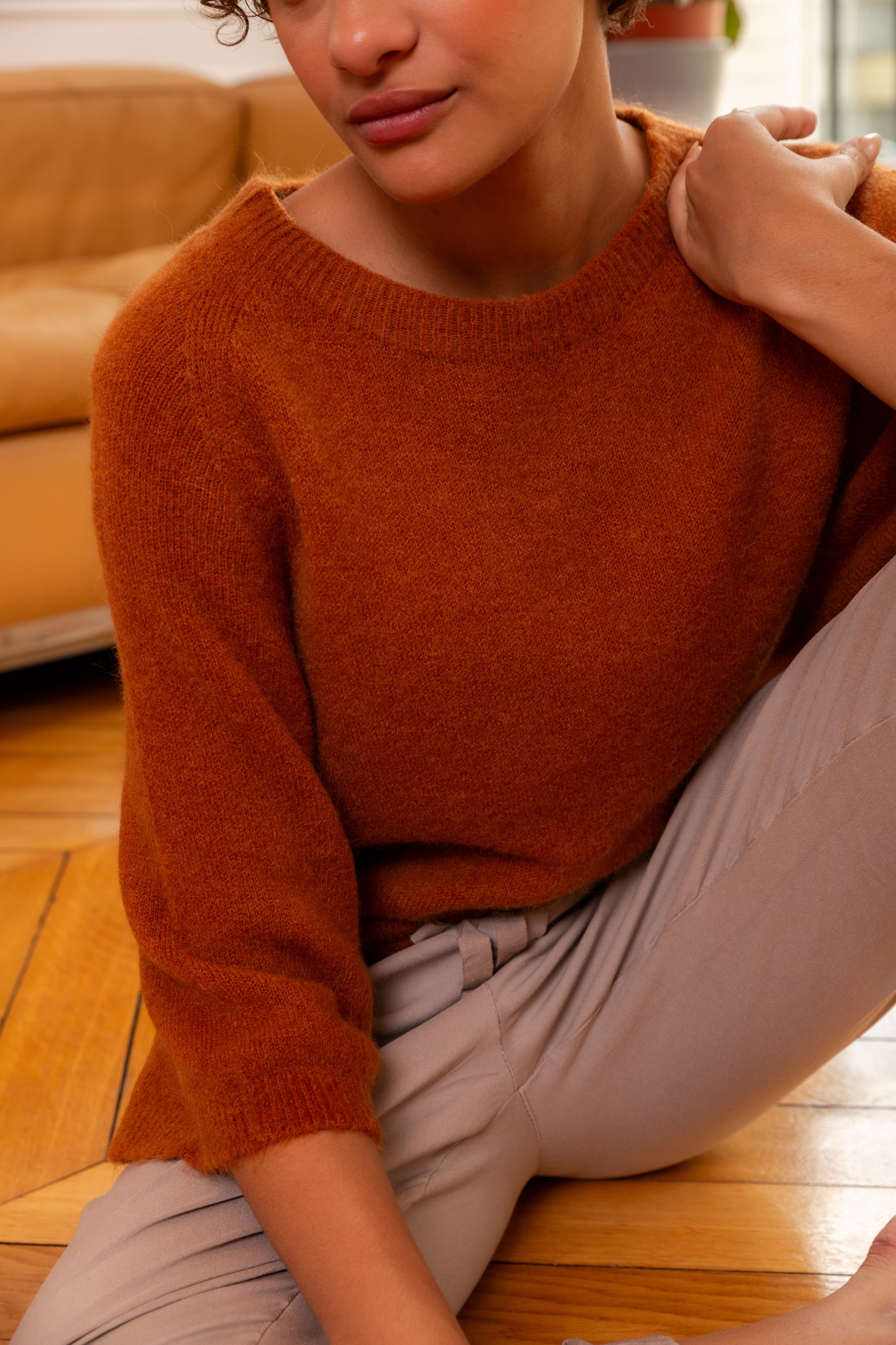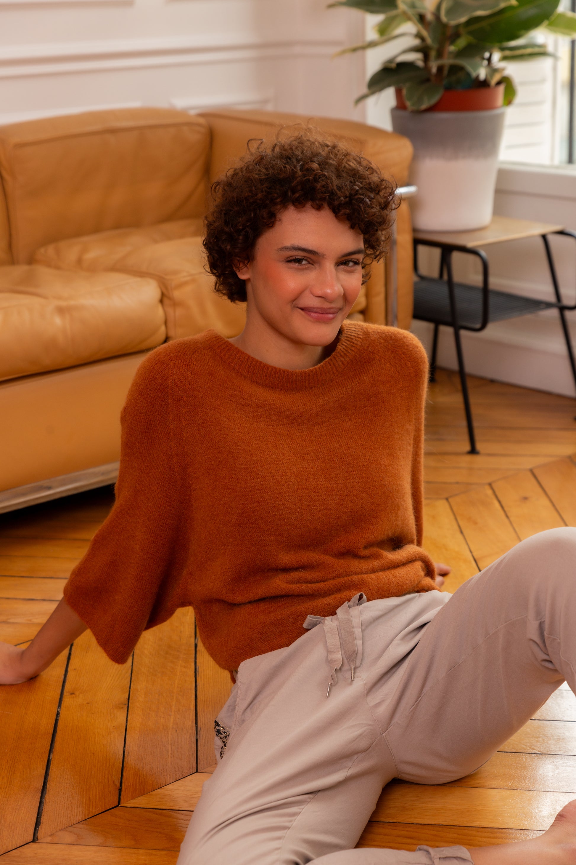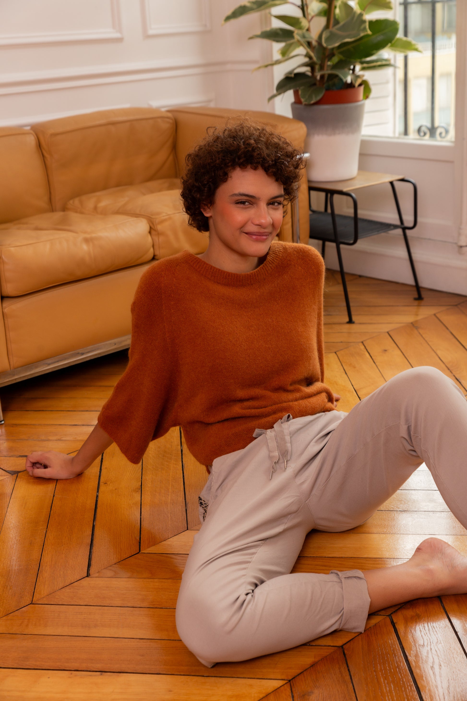La présence de 30 % d’alpaga et 17 % de laine garantit chaleur et douceur, idéale pour l’hiver et la mi-saison. L’ajout de polyamide et polyacrylique apporte légèreté et résistance, tandis que l’élasthanne permet une aisance parfaite. Sa coupe légèrement ample offre un tombé fluide et féminin.