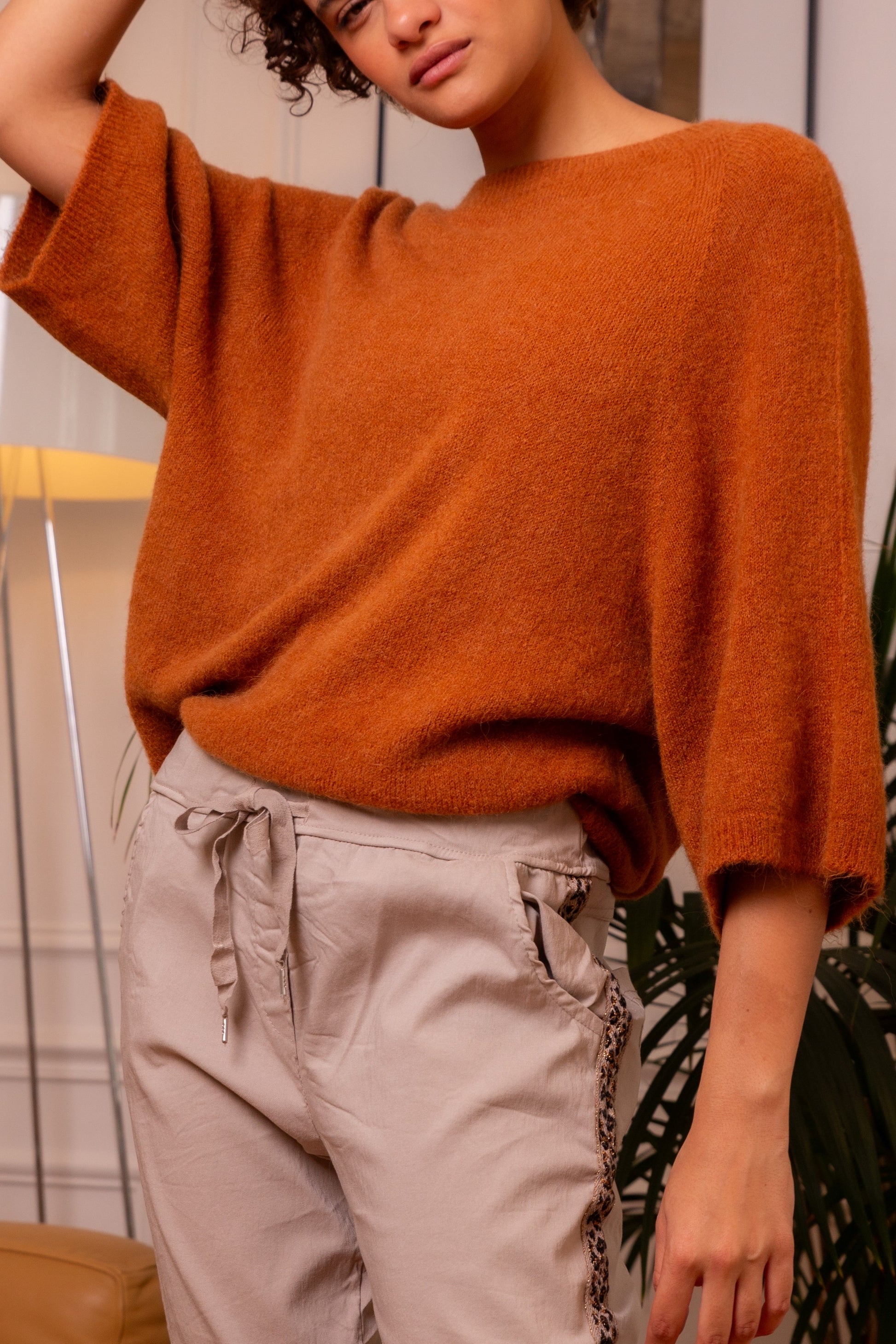 Décliné en plusieurs coloris (kaki, rouge, moutarde), ce pull s’adapte à toutes les envies mode. Portez-le avec un jean taille haute et des bottines pour un style casual chic, ou associez-le à une jupe fluide et des bottes pour un look bohème affirmé.