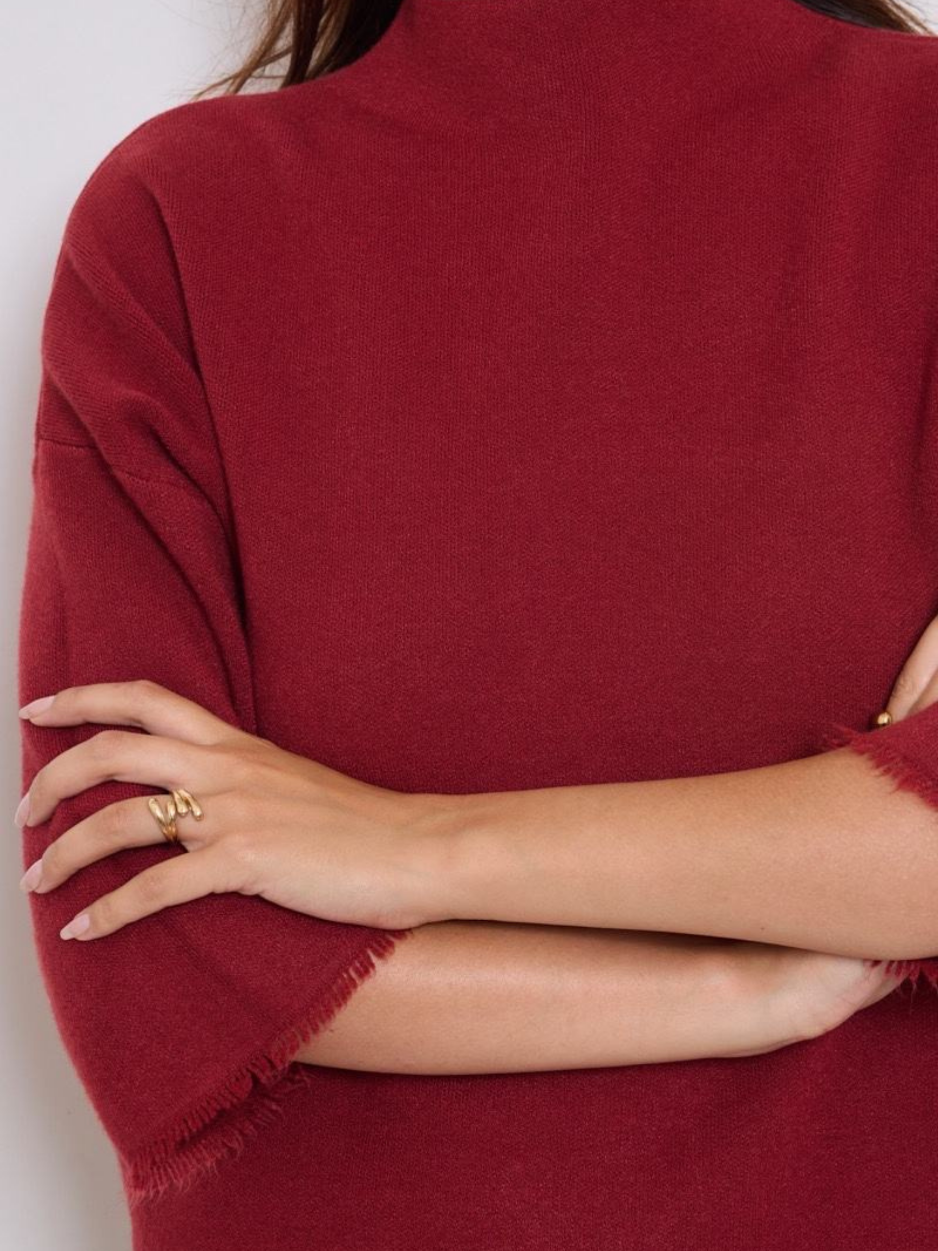 Ce pull col montant femme combine simplicité, confort et modernité. Conçu en maille douce avec une touche de polyester recyclé, il s’impose comme un indispensable de la saison. Sa coupe ample et ses manches 3/4 légèrement évasées apportent une allure décontractée et tendance.