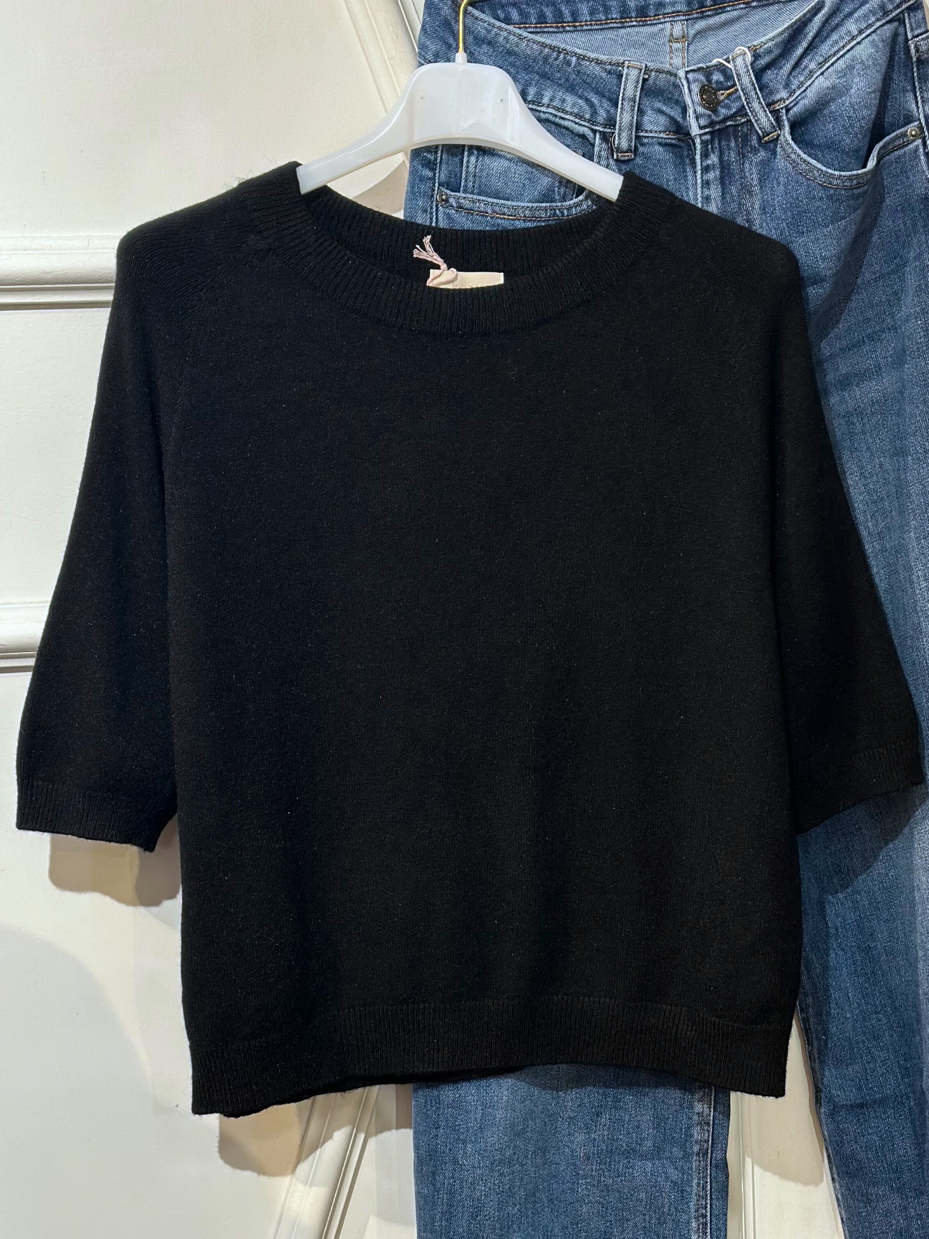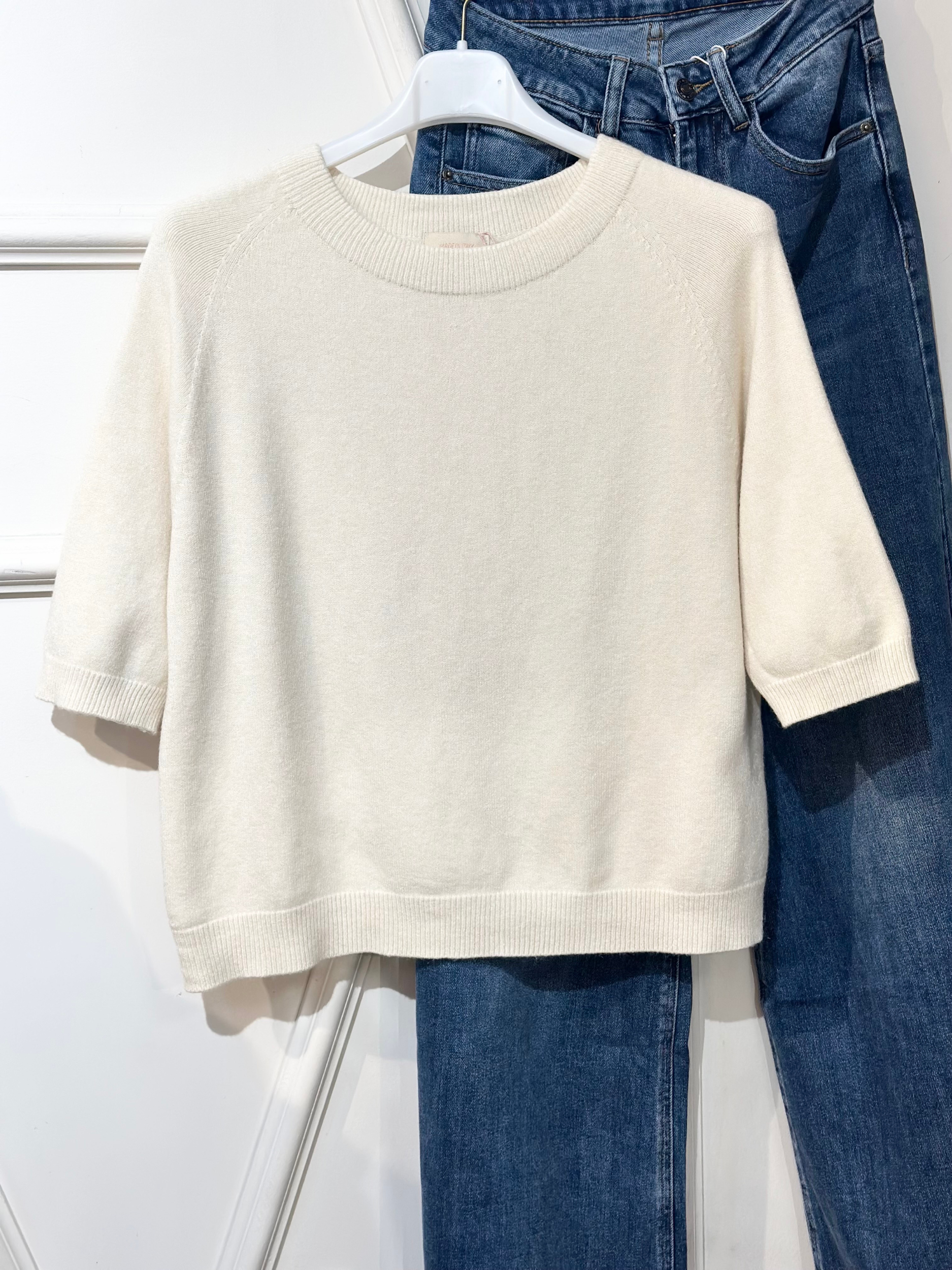 Douceur, confort et modernité sont réunis dans ce pull à manches courtes col rond, un basique revisité pour vos tenues de mi-saison. Sa maille fine en viscose, polyamide et polyester est agréable à porter, légère et respirante.