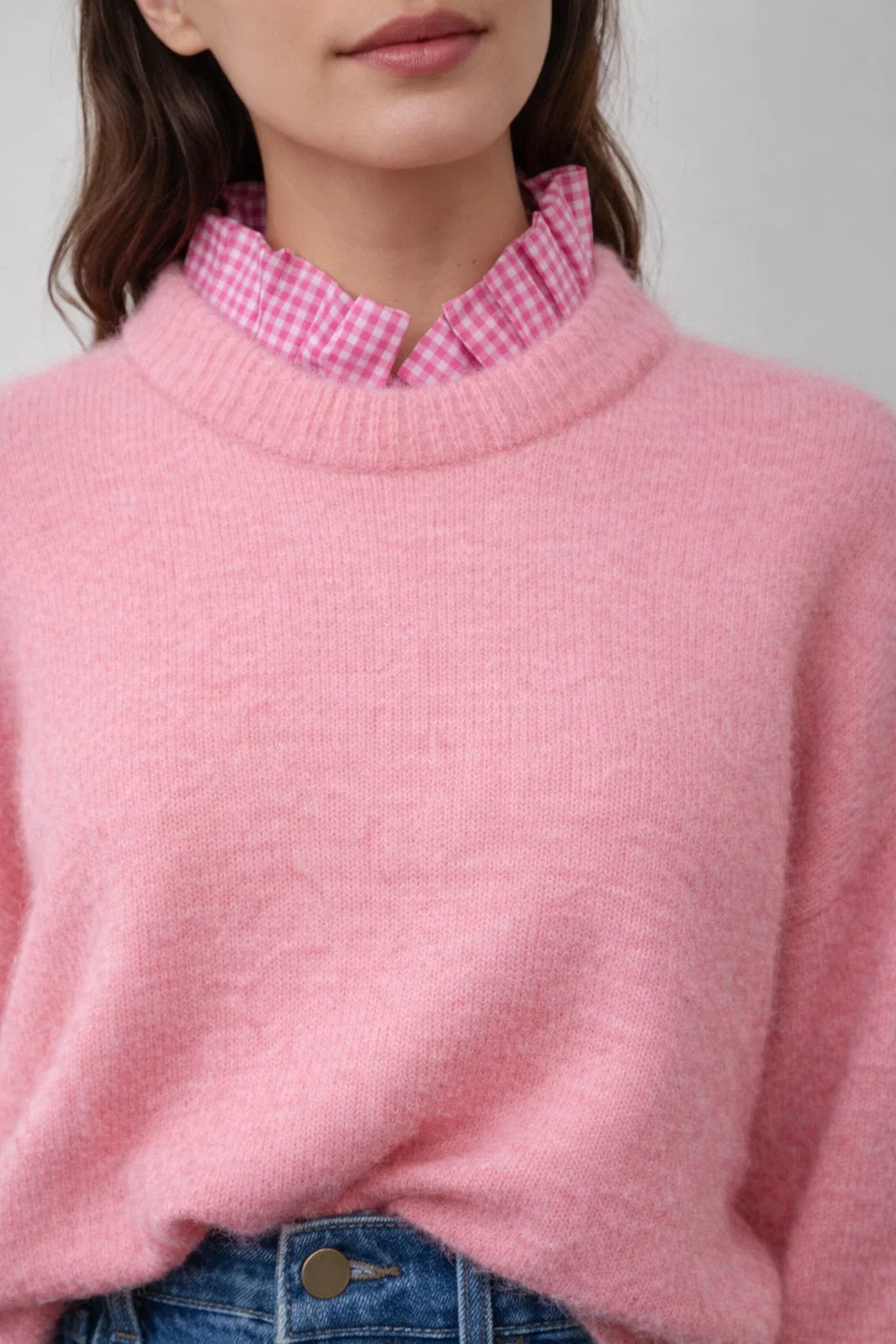 Le col chemise apporte une vraie tenue au pull. Il structure le haut du buste, met en valeur le port de tête et permet d’obtenir un look soigné en un seul geste, sans effort.