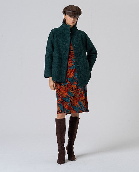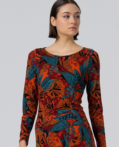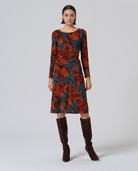 Cette robe Surkana séduit par son imprimé floral audacieux aux tons chauds, parfait pour la saison automne-hiver. Sa coupe mi-longue et ses manches longues en font une pièce à la fois féminine et confortable. Confectionnée en 96% viscose Ecovero et 4% élasthanne, elle est douce, fluide et légèrement extensible, assurant une liberté de mouvement optimale.