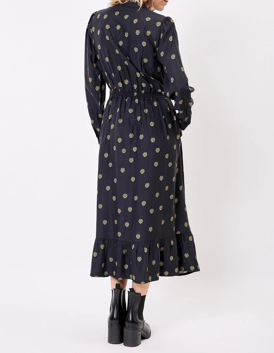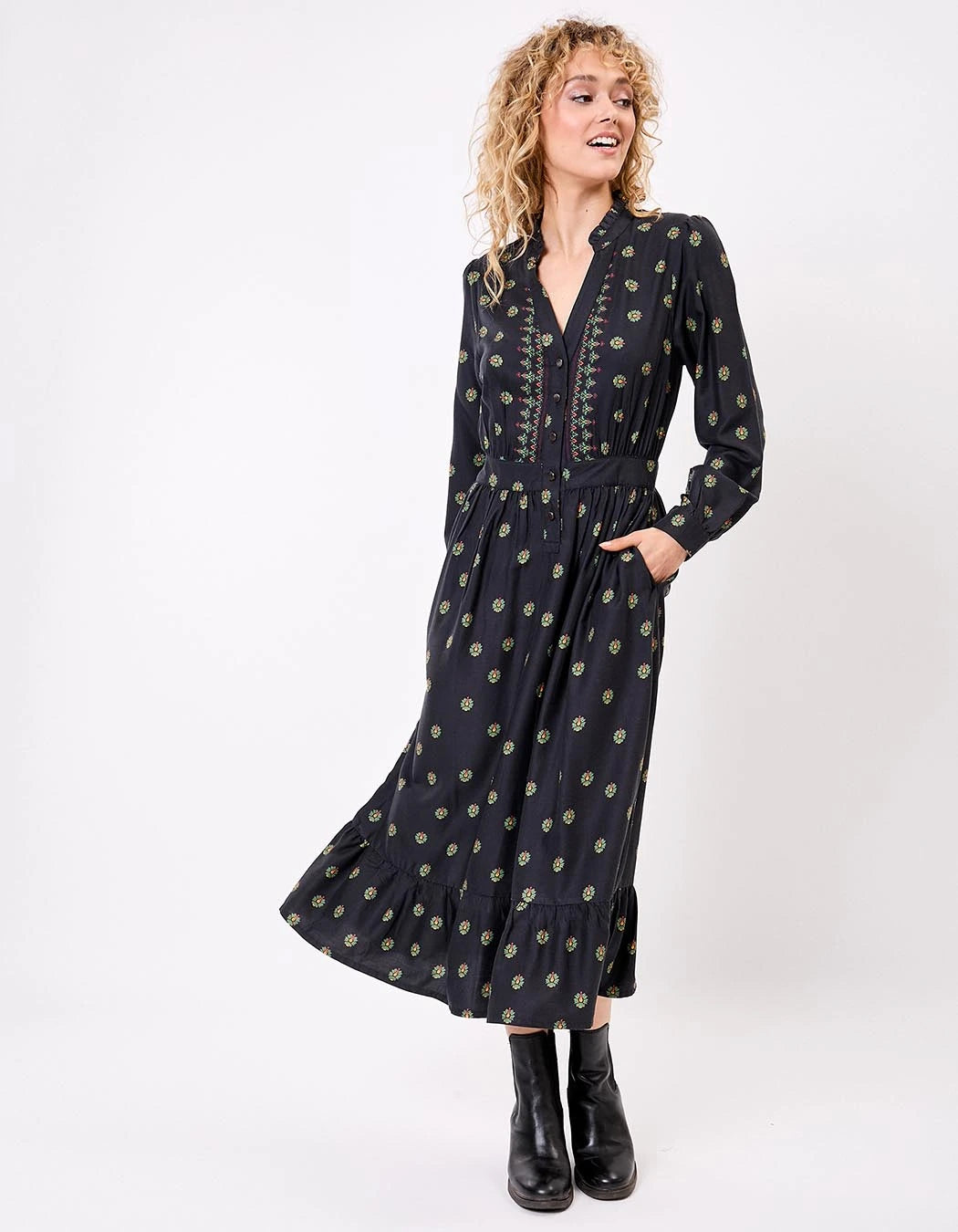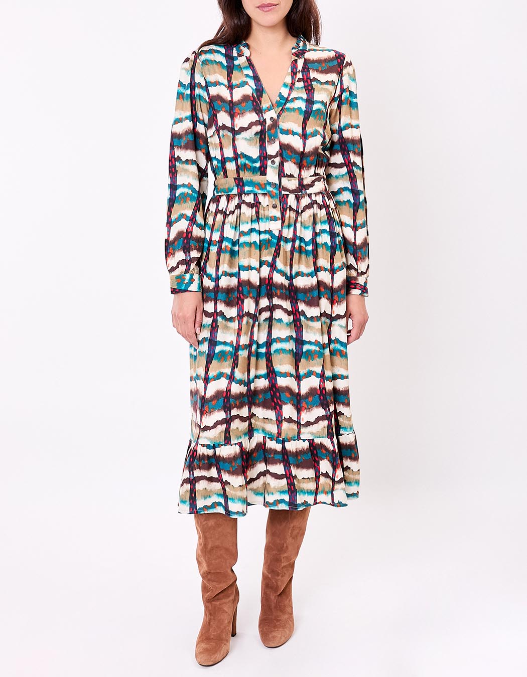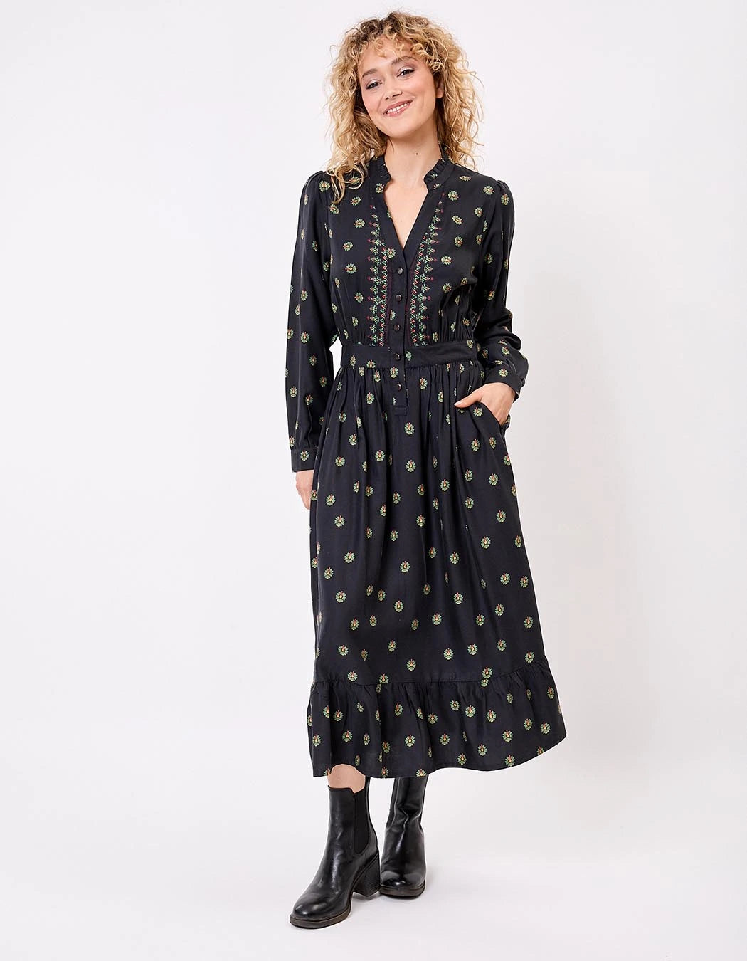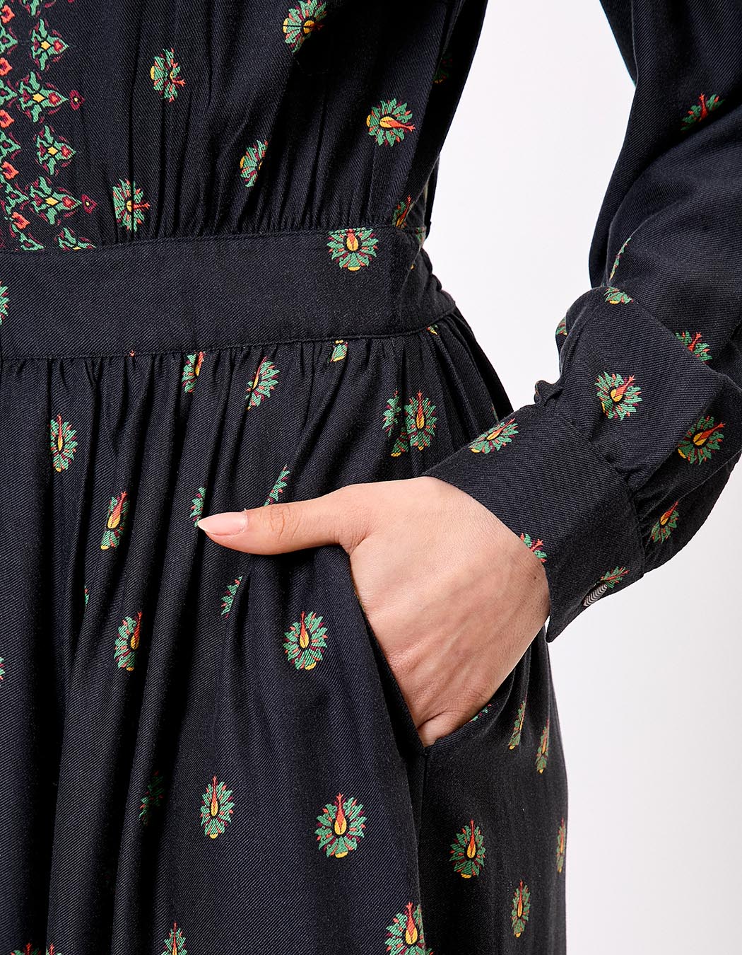 Parfaite pour la mi-saison comme pour l’hiver, cette robe s’associe aussi bien à des bottines en cuir qu’à des sandales pour un look plus léger. Son imprimé Asha délicat s’intègre harmonieusement dans un vestiaire bohème chic et intemporel.