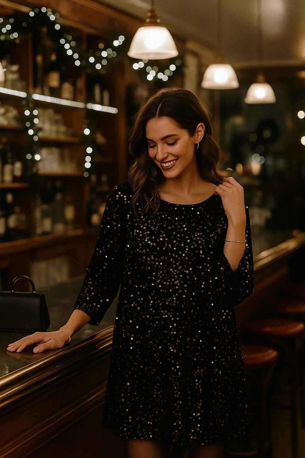 Robe en velours à sequins – glamour, lumineuse et parfaite pour vos soirées